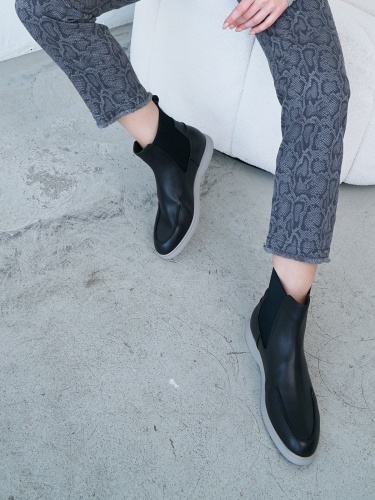 Женские ботинки из натуральной кожи выполнены в классическом стиле. Широкие резинки по обеим сторонам обеспечивают удобство и комфорт в носке.