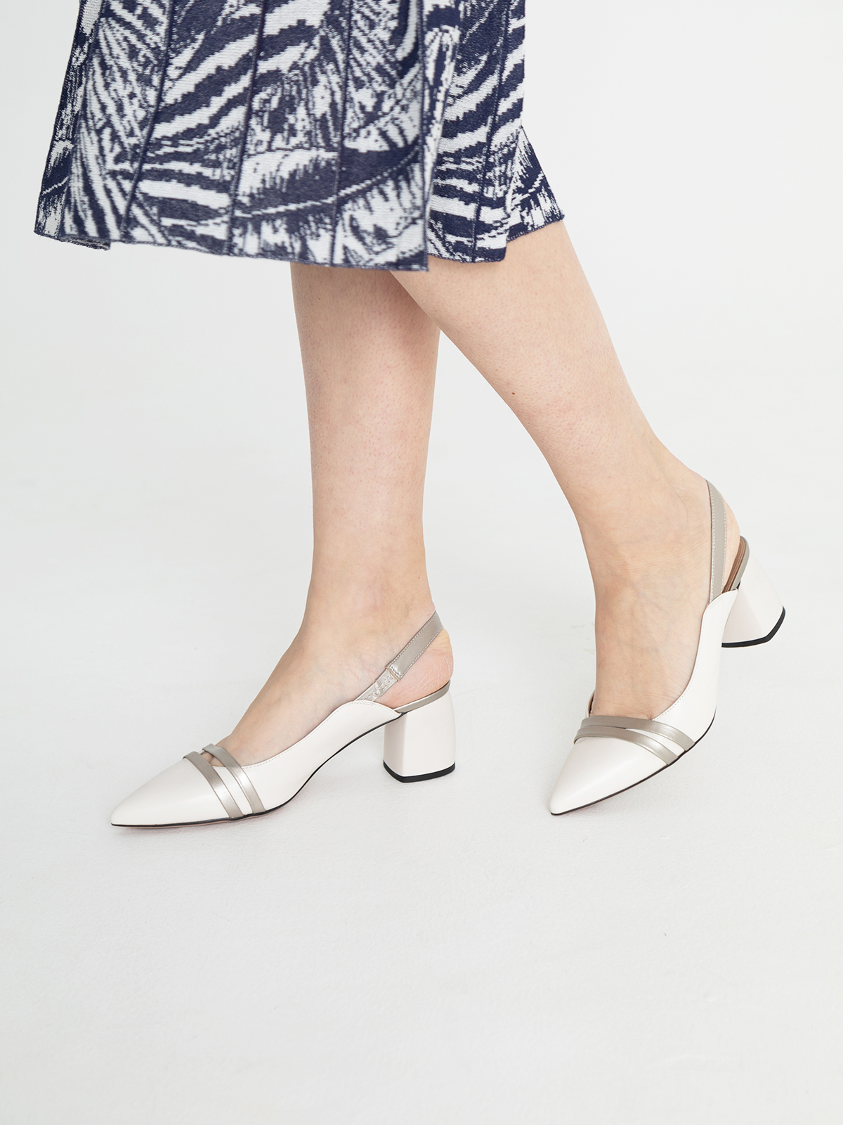 Элегантные туфли из натуральной кожи. Открытая пятка, заостренный нос. Высота каблука: 6. Универсальная расцветка дополнит образы различных стилей.