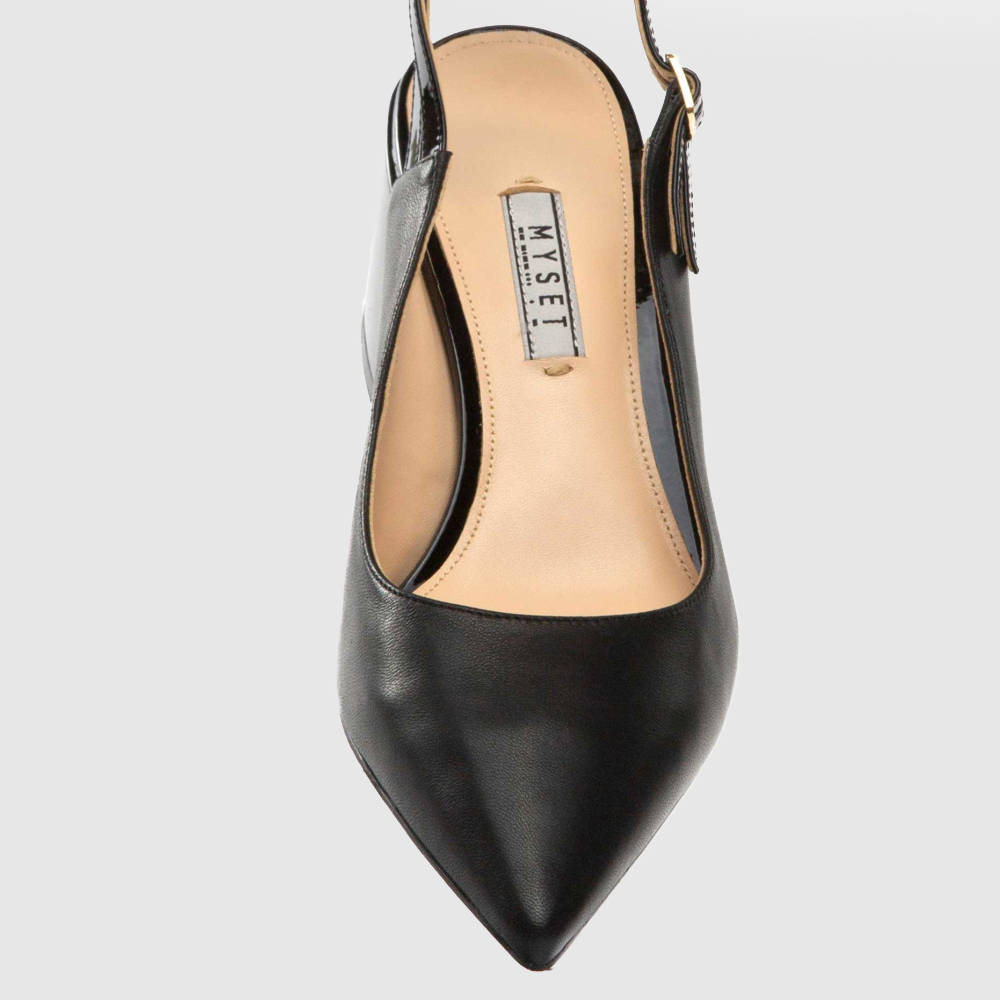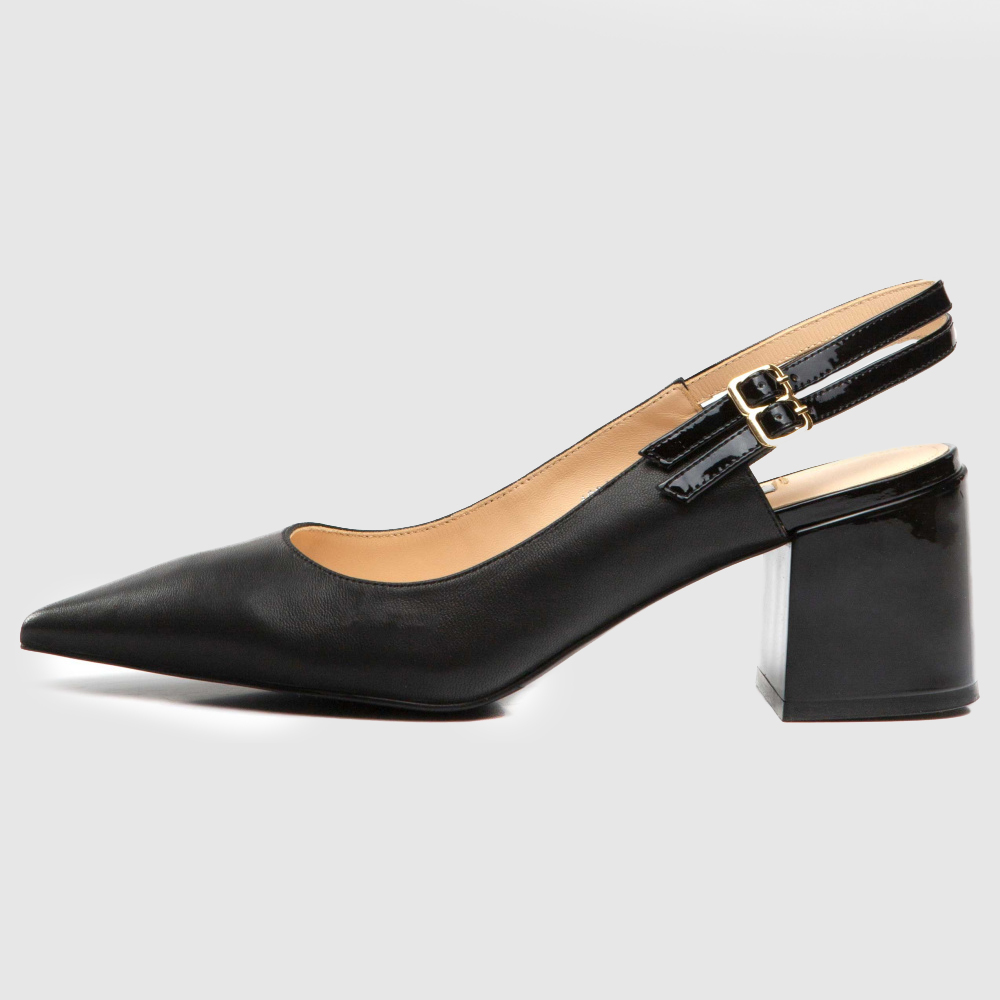 Элегантные туфли из натуральной кожи. Открытая пятка, заостренный нос. Высота каблука: 6 см. Универсальная расцветка дополнит образы различных стилей.