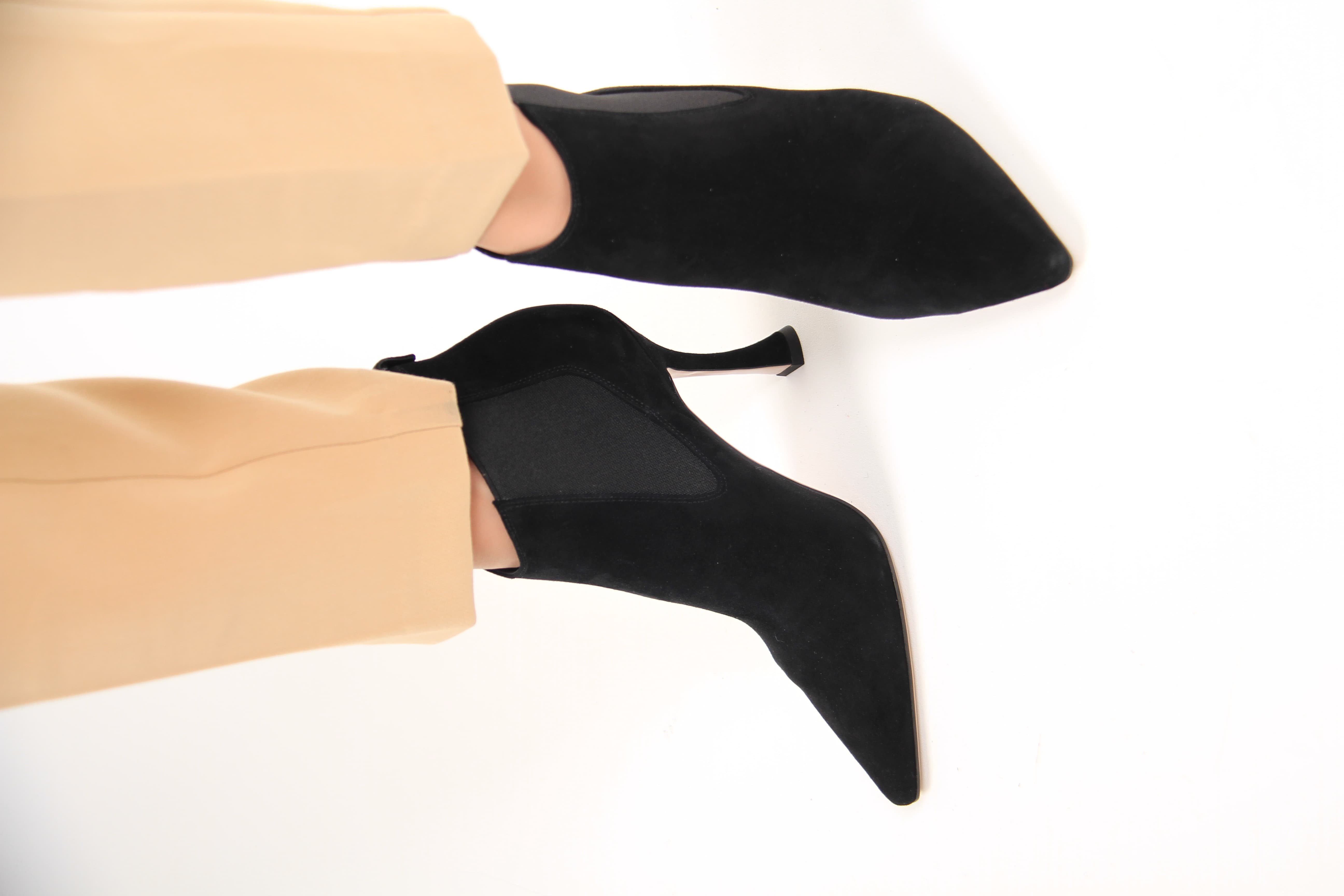 Ботильоны из натуральной замши. Высота каблука: 8,5 см.
