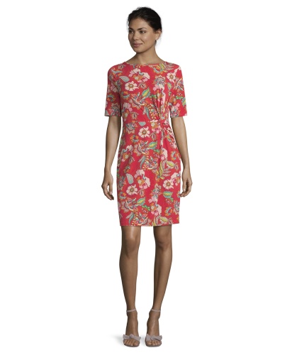 Платье-футляр - невероятно женственная модель! Круглый вырез горловины, рукава 1/2. Трендовый цветочный принт. Завершает дизайн элегантный элемент - складка в районе талии. Платье выглядит шикарно как с блейзером, так и с джинсовой курткой.