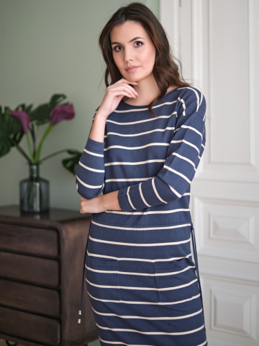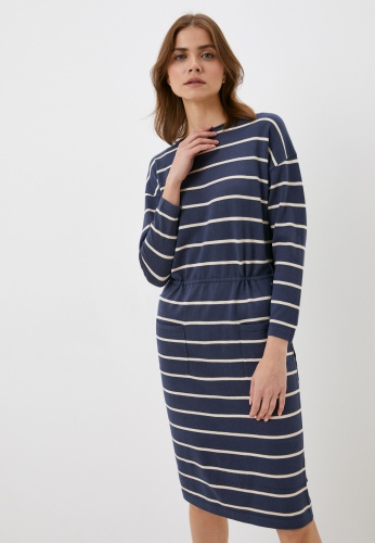 На сайте указаны Российские размеры. Платье длины миди в полоску станет частью повседневного городского образа. Материал из смеси вискозы и нейлона приятен к телу и обеспечивает комфортное ношение. Кулиска на талии. Овальный вырез горловины. Втачной рукав полной длины.