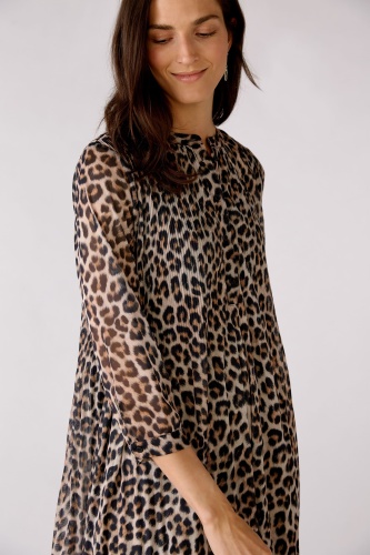 На сайте указаны российские размеры. Свободное макси-платье со складками и принтом. Прозрачная сетка по всей поверхности. Повседневная, непринужденная посадка. Текущая длина миди. Облегающие складки на верхней части туловища, свободные и струящиеся в области юбки. Модель на подкладке.
