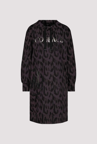 На сайте указаны российские размеры. Спортивное платье миди с воротником-стойкой и принтом по всей поверхности. Это изделие привлекает всеобщее внимание сплошным леопардовым принтом, а лицевая сторона украшена лакированными буквами и стразами, а также сверкающей эмблемой из страз. С воротником-стойкой на кулиске, люверсами и завязками, широкими манжетами с рюшами на концах рукавов и широкой манжетой по низу модель миди прямого кроя предстает с лучшей стороны. Карманы в боковых швах завершают стильный образ. Хлопок в смеси также обеспечивает отличный комфорт при ношении в течение дня. Модель ростом 178 см. Длина спины 44 размера составляет 96 см.