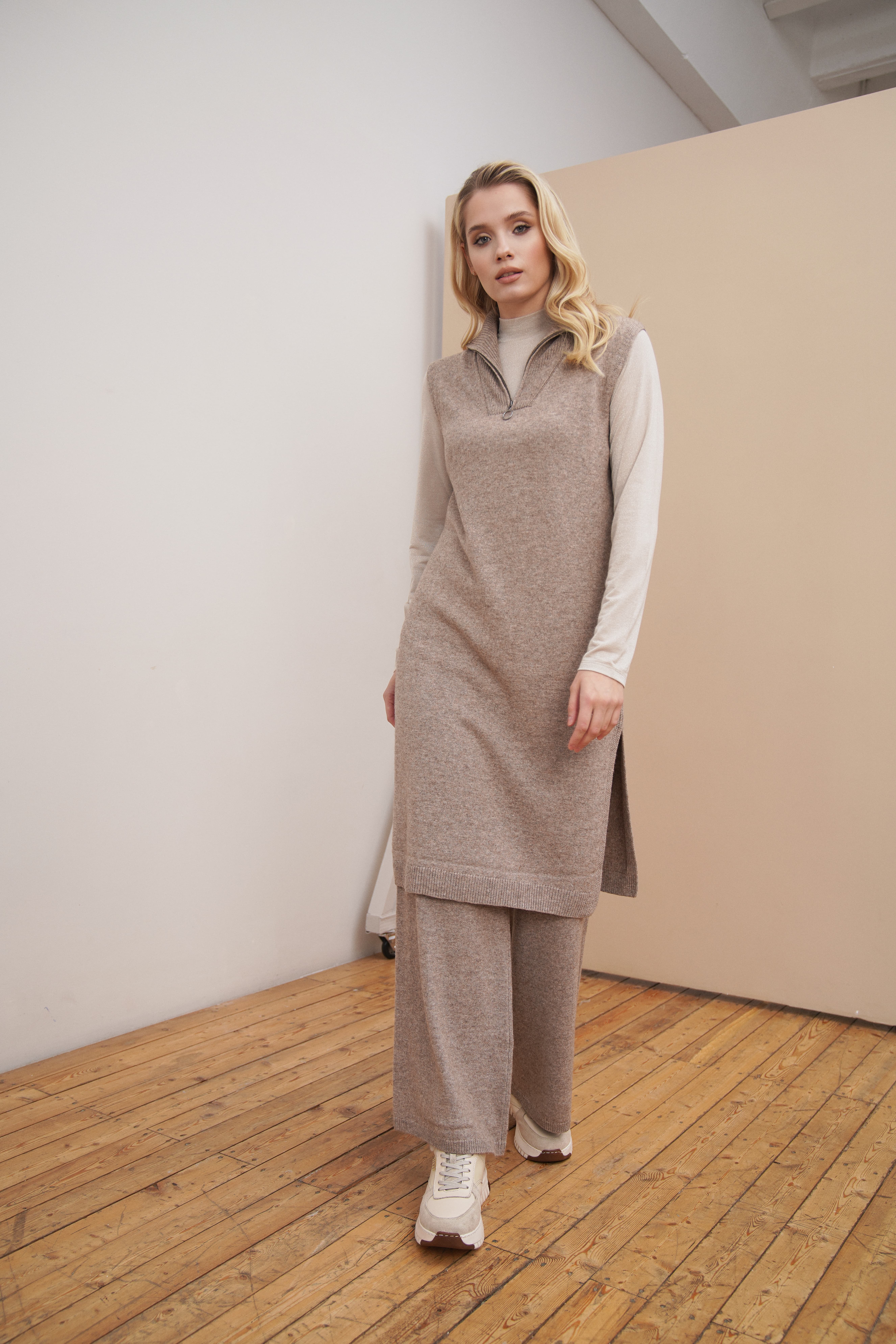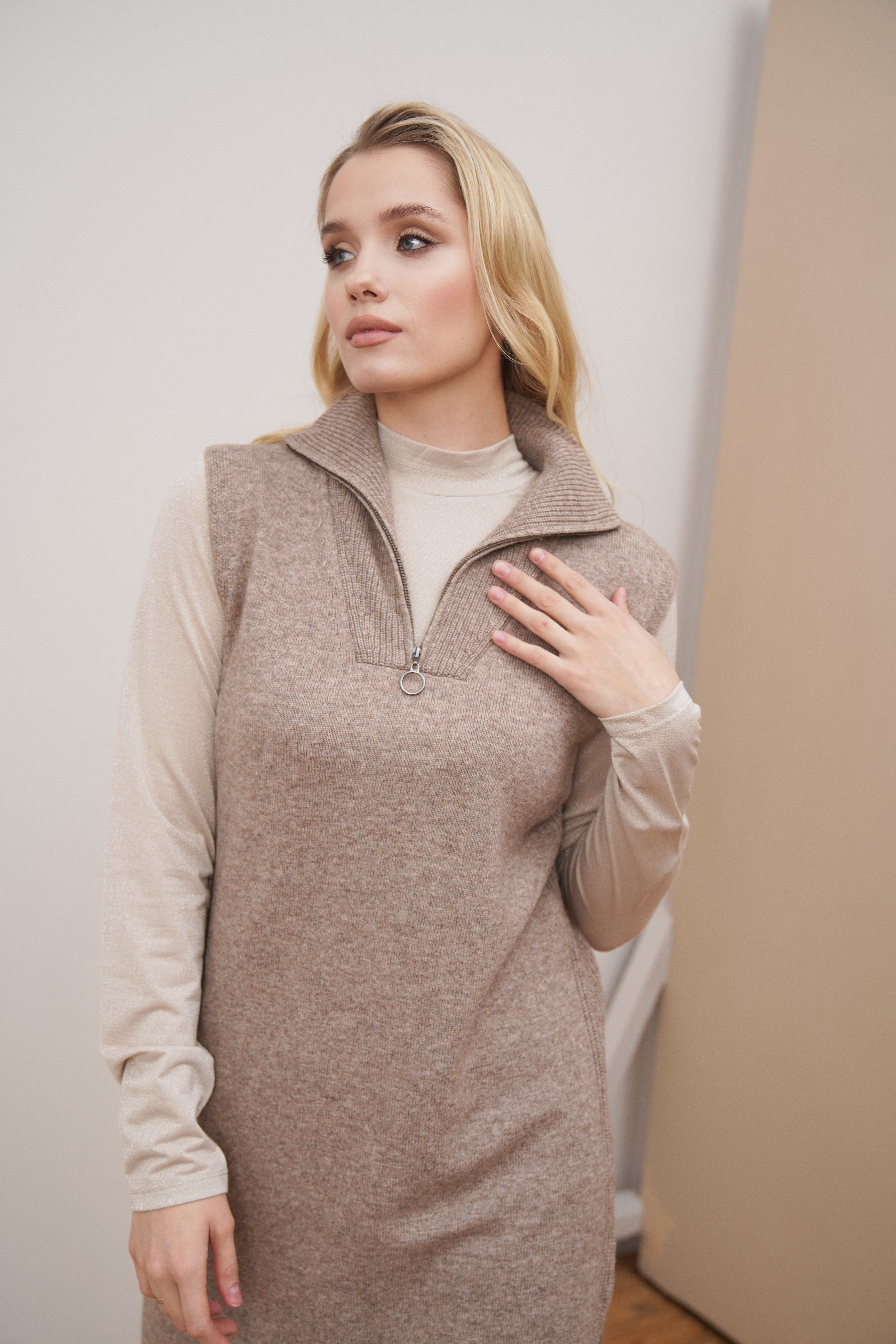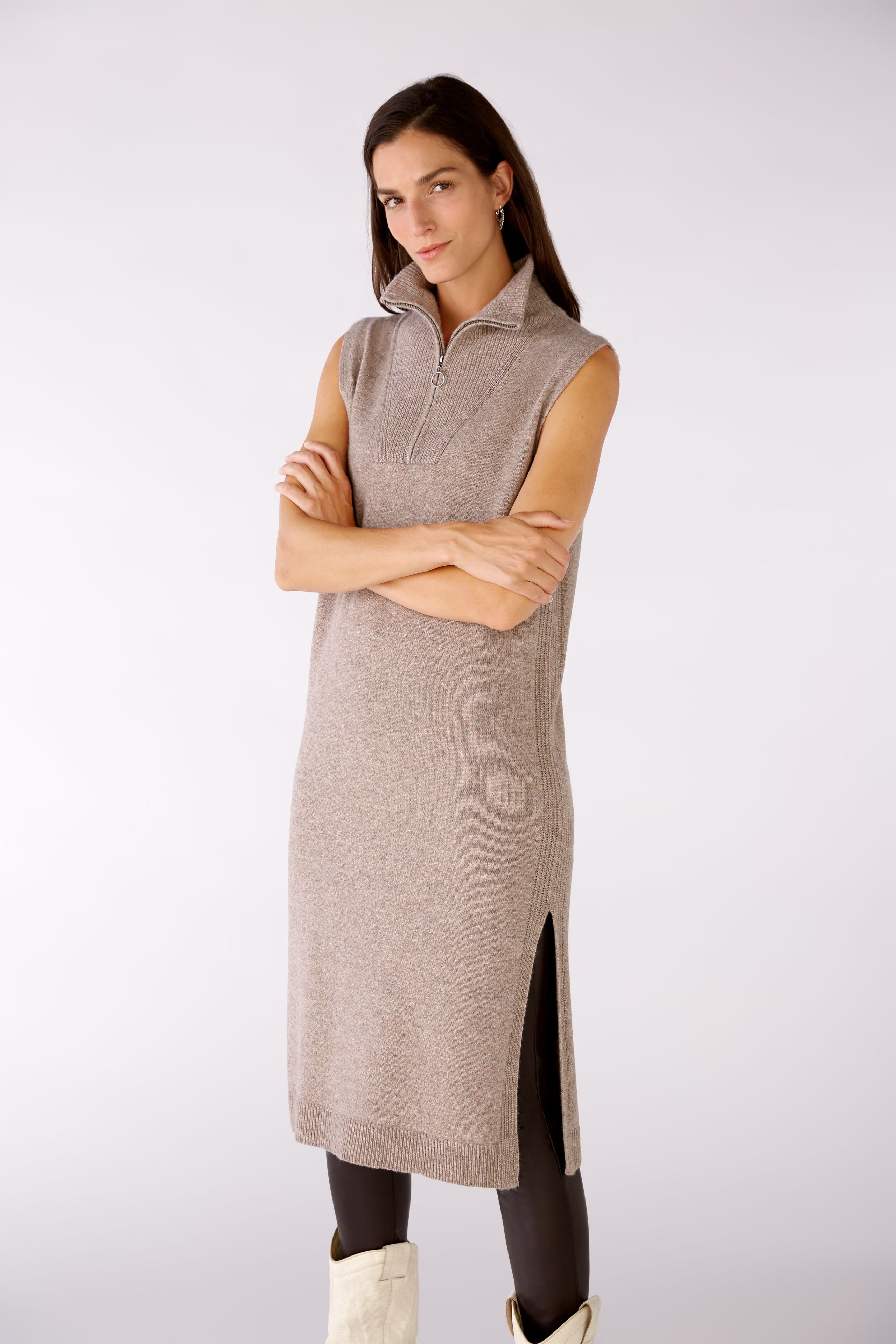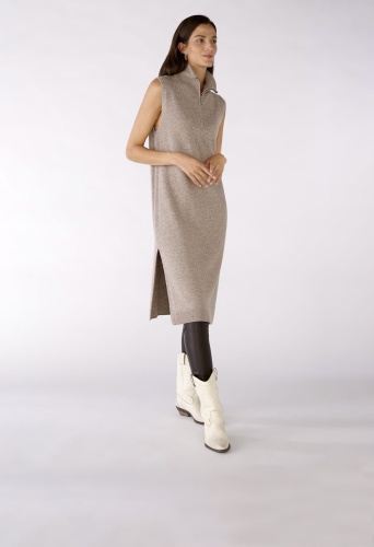 На сайте указаны российские размеры. Мягкое трикотажное платье OUI с модной деталью: воротником на молнии. Мягкая смесь шерсти, простой трикотаж. Повседневный крой со спущенными плечами, прямой трикотаж, длина миди. Двойной тройной воротник-стойка. Молния спереди, заканчивается воротником. Детали в рубчик и разрезы по бокам. Длина в размере 42: 102 см. Рост модели 178 см.