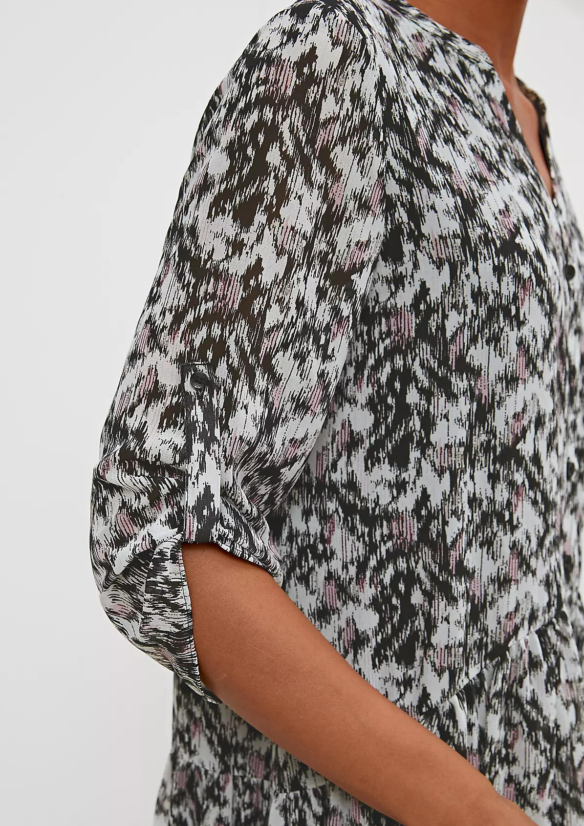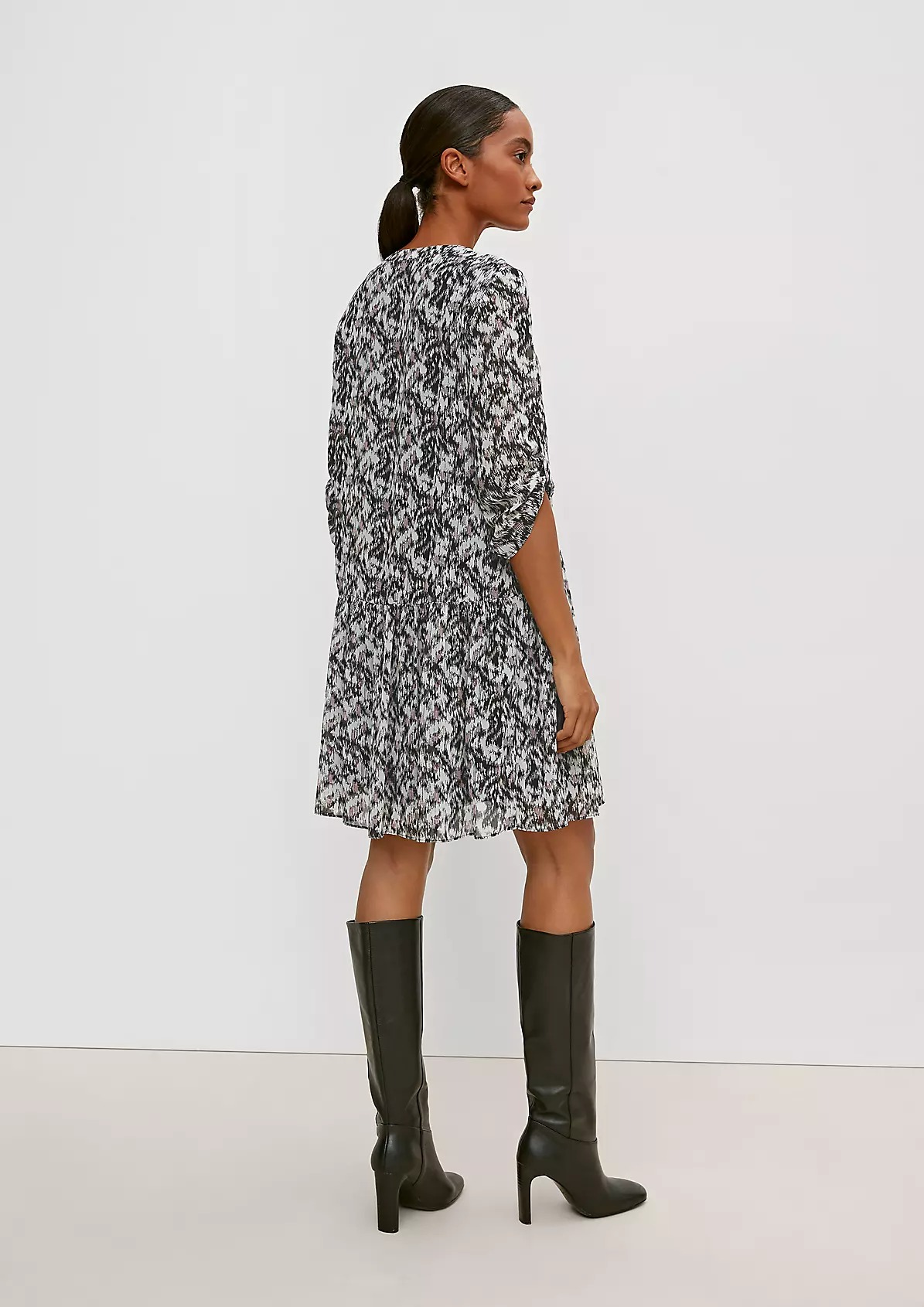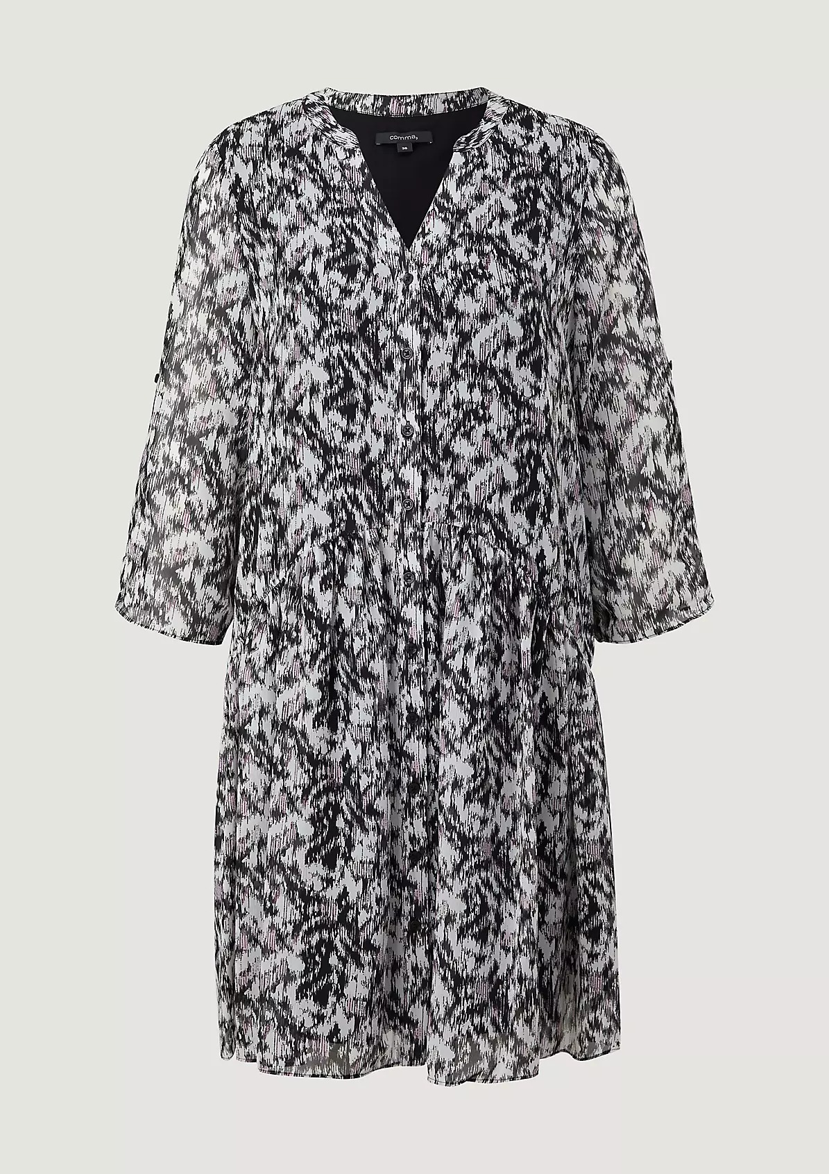 На сайте указаны российские размеры. Шифоное платье с непрозрачной подкладкой. Треугольный вырез горловины, рукава фиксируются. Длина спинки в 42 размере - 94 см.