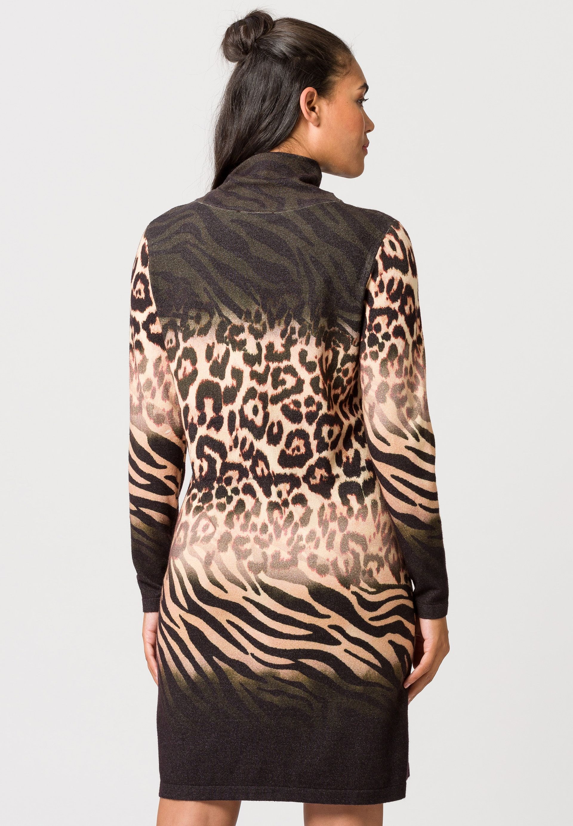 Одна из наиболее часто встречающихся модных тенденций текущего сезона – вязаные платья самых разнообразных фасонов. Эту модель водолазки с длинными рукавами чрезвычайно удобно носить благодаря прямому крою и мягкому тонкому трикотажу. Градиентный животный принт. ПЛАТЬЕ В ПРОДАЖЕ БЕЗ НАДПИСИ НА ГРУДИ.