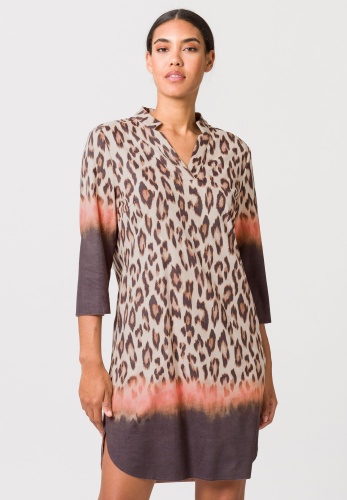 Платье женское с узким воротником-стойкой и V-образным вырезом. Животные принты — это классика молодежного, стильного повседневного гардероба, и она определенно останется таковой надолго. Поэтому неудивительно, что следящие за модой женщины год за годом включают рисунки животных в свой гардероб, как это видно на этом облегающем фигуру платье. Особая изюминка этого платья: качество джерси с мягкой шероховатой поверхностью придает классному дизайну с принтом элегантную замшевую отделку. Боковые карманы и рукава длиной 3/4 придают модели спортивный вид.