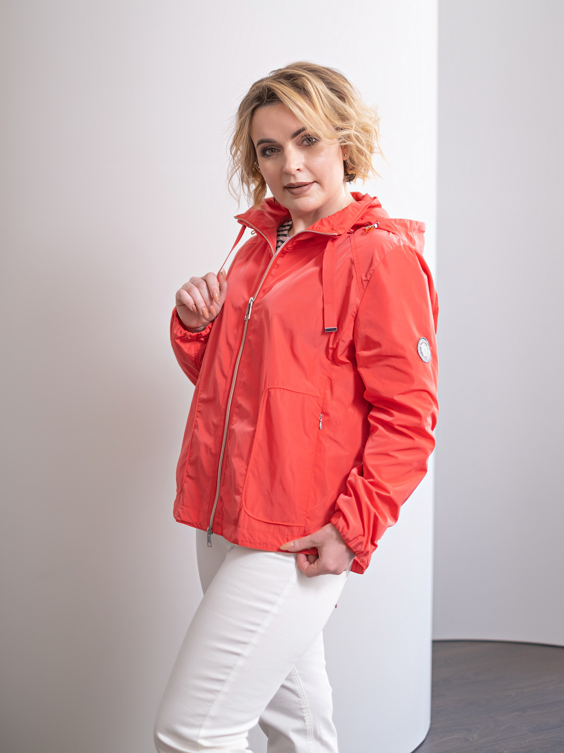 Яркая ветровка – незаменимый выбор этого сезона. Защита от влаги и ветра в сочетании с броским стилем. Воротник-стойка, застежка на молнию. Боковые карманы на скрытой молнии. Втачной рукав полной длины со сборками на манжетах.