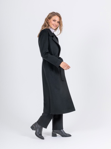 На сайте указаны российские размеры. Офисное строгое пальто из 100% шерсти. Прямой крой, английский воротник, внутренние карманы, на поясе. Вдоль бокового шва с 2-х сторон пальто расположены замки, расстегнув которые можно задать модели изюминку в виде разрезов. Рост модели: 174 см