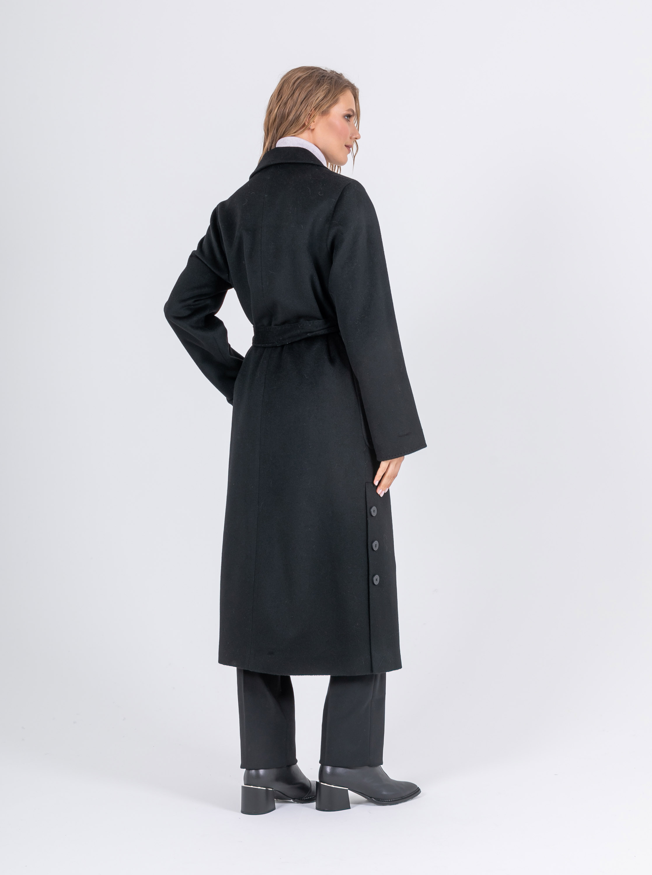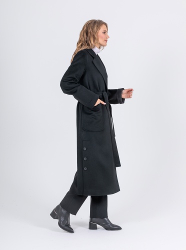 На сайте указаны российские размеры. Классическое строгое пальто из 100% шерсти. Прямой крой, английский воротник, большие наружные карманы, на пуговицах и поясе. Украшена модель тремя дополнительными пуговицами внизу вдоль бокового шва с 2-х сторон пальто. Рост модели: 174 см