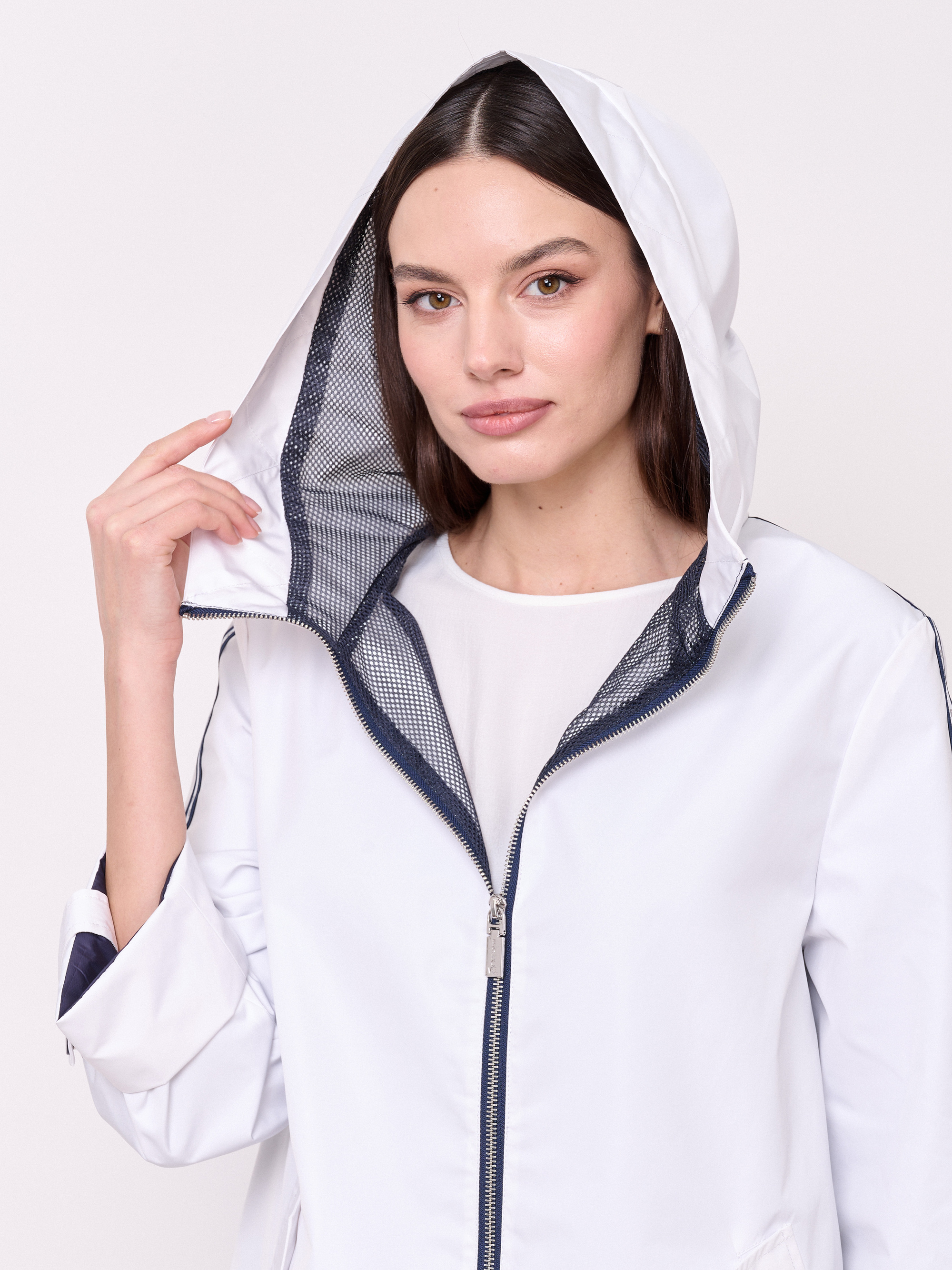 Застежка молния, несъемный капюшон, рукава длинные с хлястиками на кнопках, покрой прямой, без рисунка, без утепления, карманы прорезные с клапанами на кнопке, борты однобортное. Длина по спинке: 84 см.