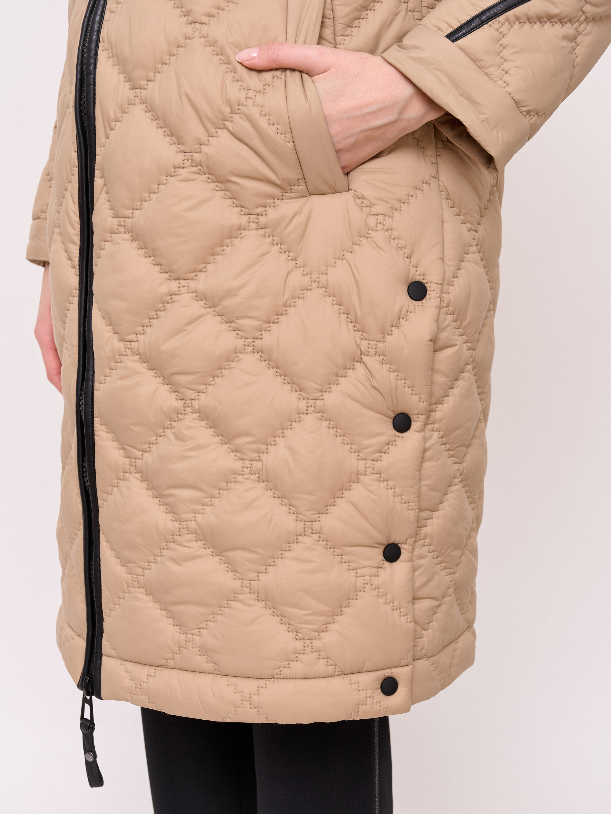 Детали: стеганое пальто, застежка молния, несъемный капюшон, рукава длинные, покрой прямой, без рисунка, утеплитель полиэстер, карманы прорезные, плотность утеплителя 150, без опушки, борты однобортное, боковые разрезы на кнопках. Плотность утеплителя: 150 см.