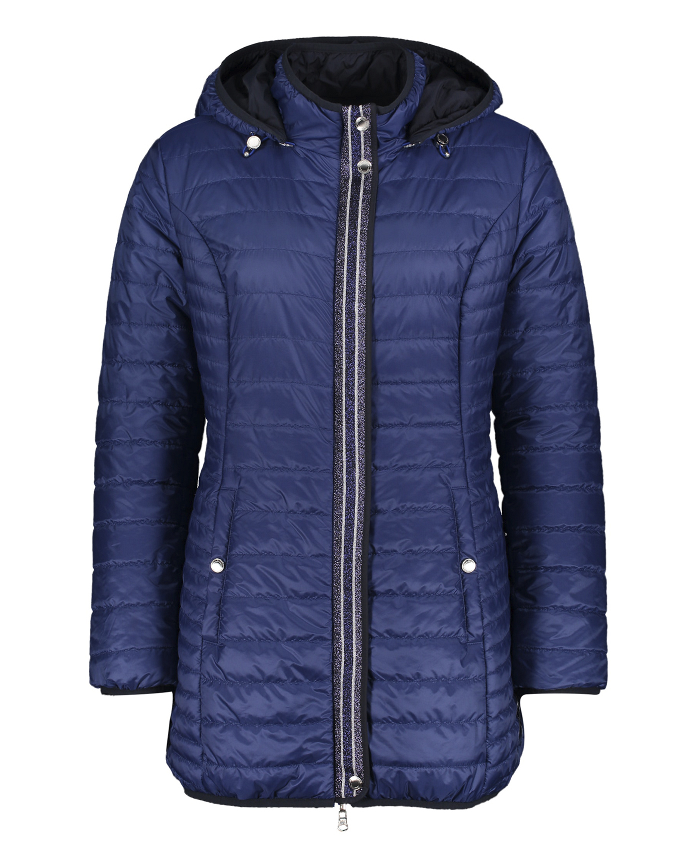 Стеганое пальто на синтепоне - наш модный ответ непогоде! Удобная длина выше колена. Слегка прилегающий силуэт подчеркивает достоинства фигуры. Капюшон на кулиске, практичный воротник-стойка. Карманы на кнопках. Ветрозащитная планка декорирована тесьмой с нитью люрекса, что придает образу нотку гламура. Эта модель - для тех, кто идет в ногу со временем и занимает активную жизненную позицию.