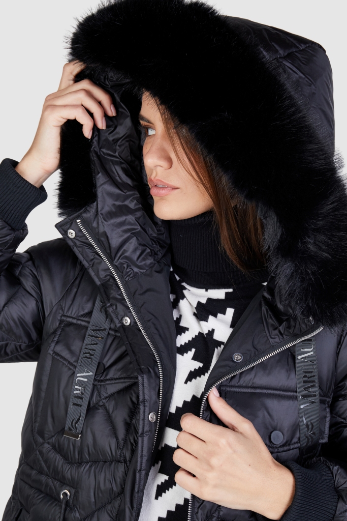 Удлиненная зимняя куртка от бренда MARC AUREL. Пуховик выполнен из водоотталкивающего атласа. Капюшон со съемным искусственным мехом и регулируемым шнурком обеспечивают оптимальный комфорт. Ососбенности модели: - Водоотталкивающий сатин. - Капюшон с искусственным мехом. - Накладные карманы на груди и прорезные по бокам. - Боковой разрез.