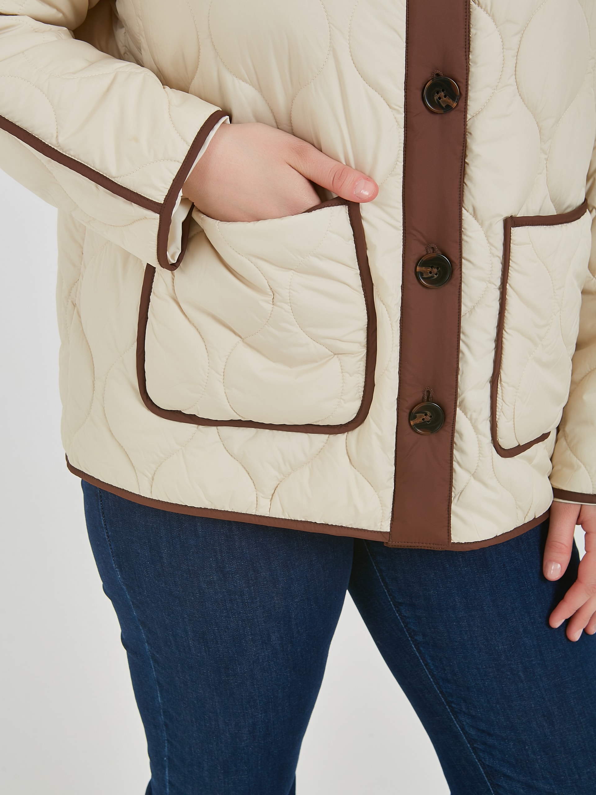 Женская утепленная куртка подарит тепло в прохладные дни. Женская куртка на пуговицах имеет удобный крой, стильный дизайн и практичность, который подходит для создания повседневных образов. Коллекция Весна-Лето 2025. Капсула "Рио де Жанейро". Параметры модели: 95-64-101, рост 175, размер 44-46