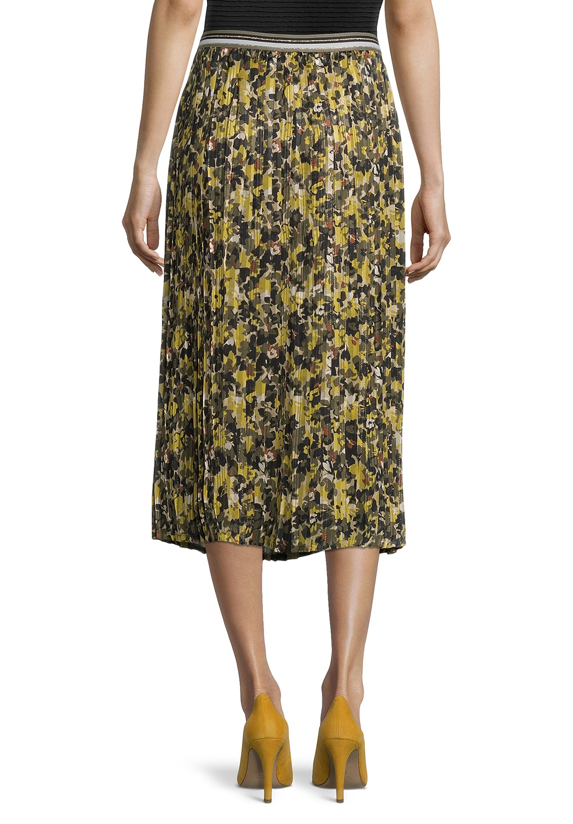 Плиссированная юбка миди - звезда модных подиумов! Принт с цветочными мотивами подчеркивает женственность обладательницы юбки. Завершает модный дизайн эластичный пояс с блестящей нитью люрекса.