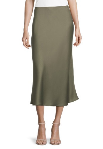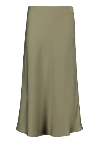 Юбка миди, облегающая в бедрах и расширяющаяся книзу - очень женственная модель. Материал юбки имеет приятный атасный блеск, создающий роскошный образ. Модель застегивается на молнию сбоку.