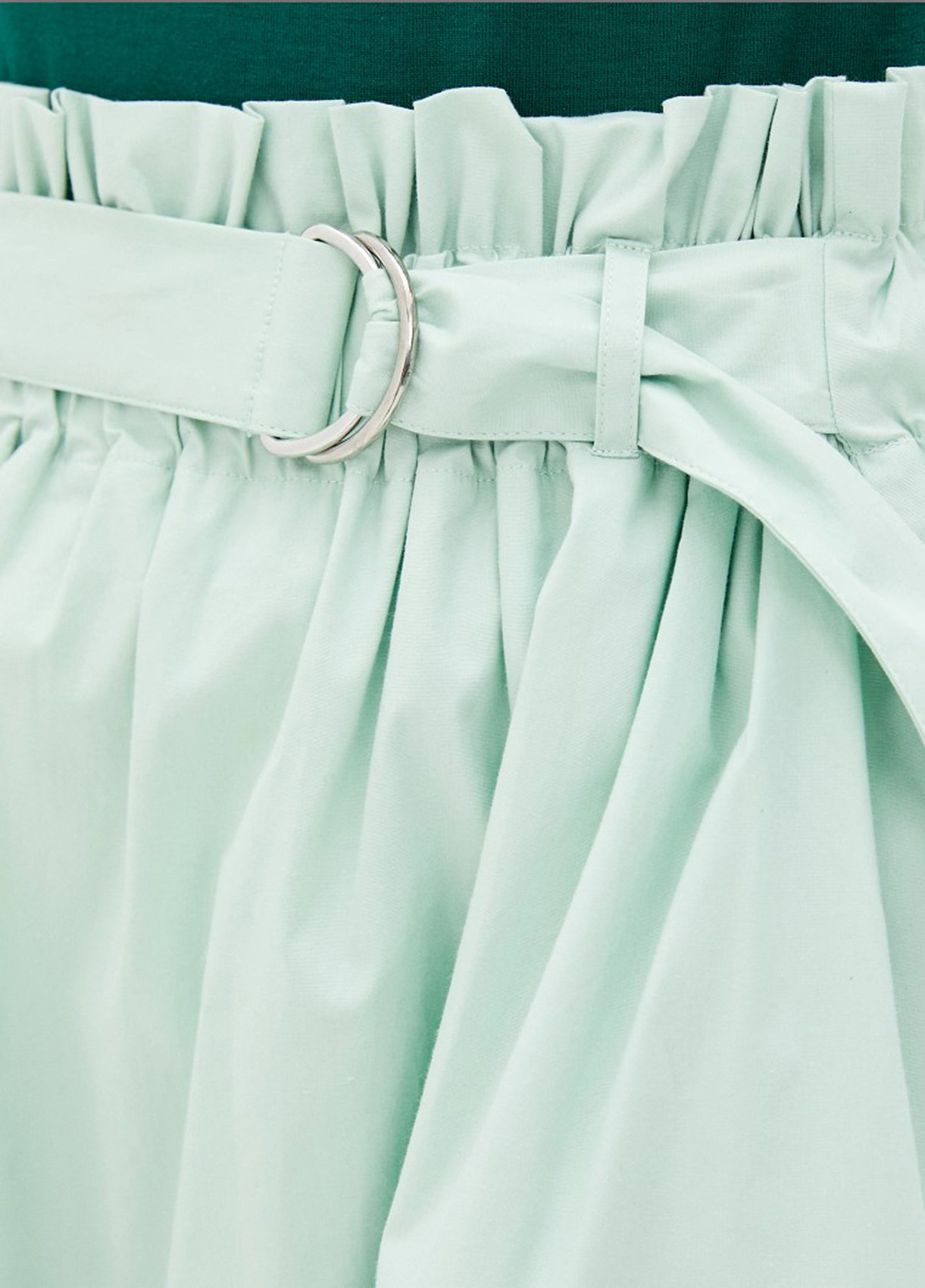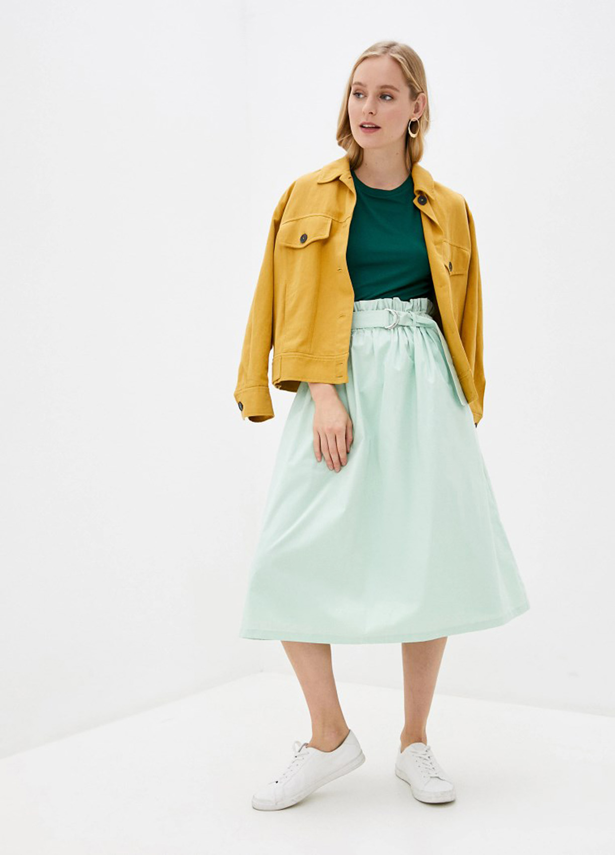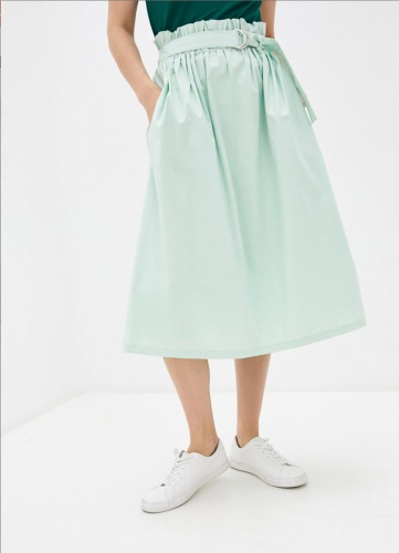 Юбка А-силуэта, насборенная на талии, - очень женственный акцент вашего образа! Тканевый пояс спереди дополняет дизайн юбки. Эта модель - стильный выбор для прогулок и путешествий.