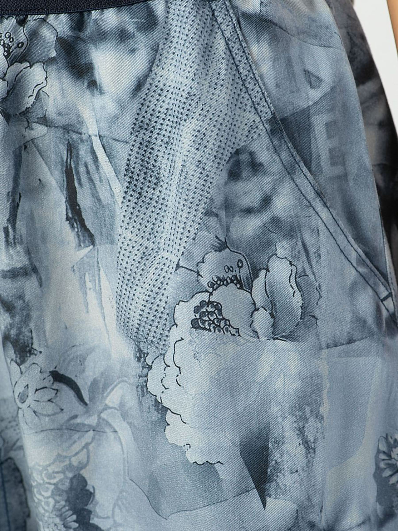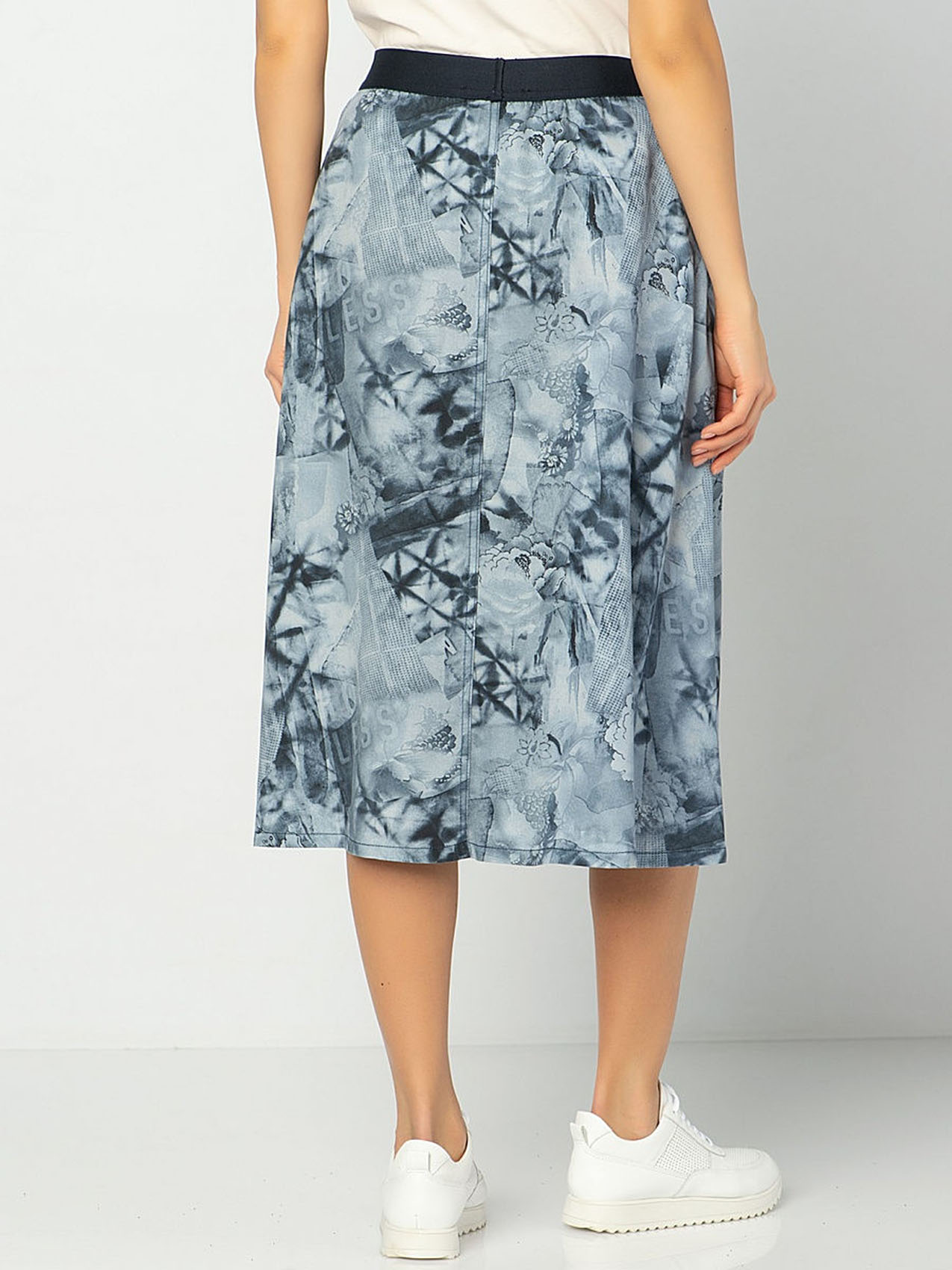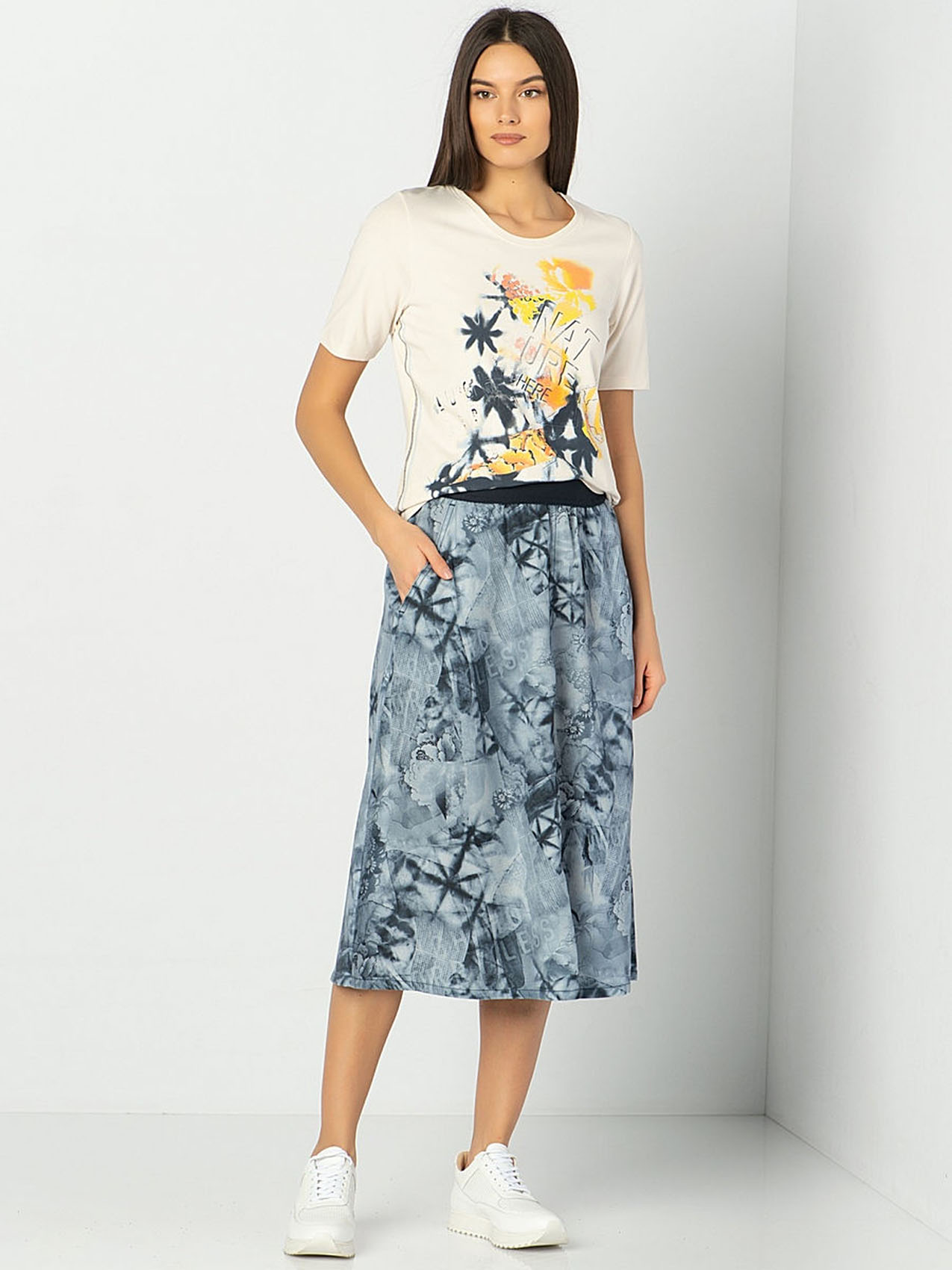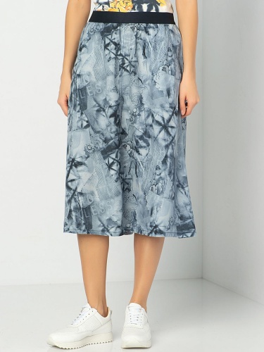 Юбка миди из тенсела. Принт с изображением цветов и легким эффектом батика. Эластичная лента на поясе.