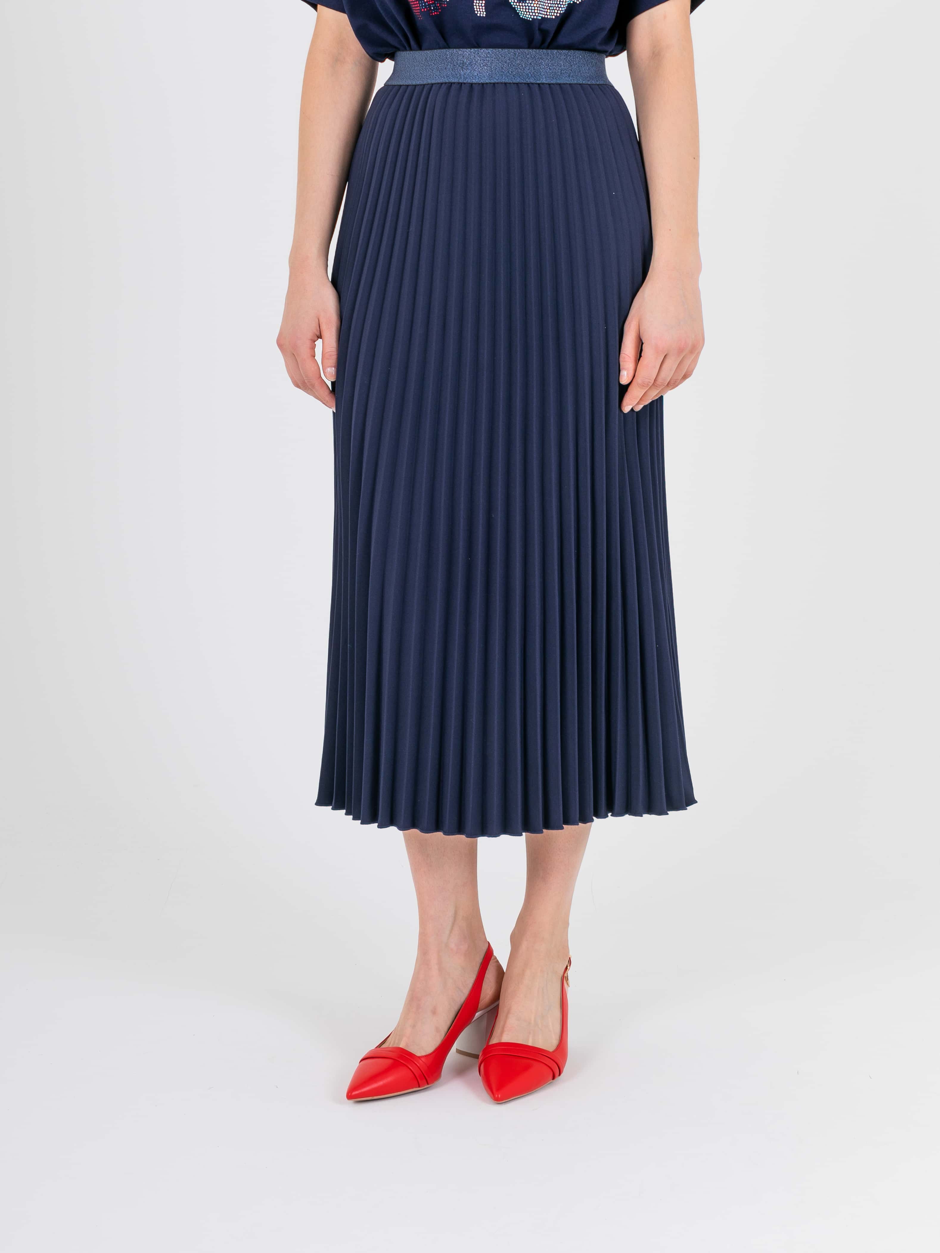 Легкая юбка полусолнце длиной до щиколоток, дизайнерская особенность модели – плиссировка. Верх юбки обработан резинкой.