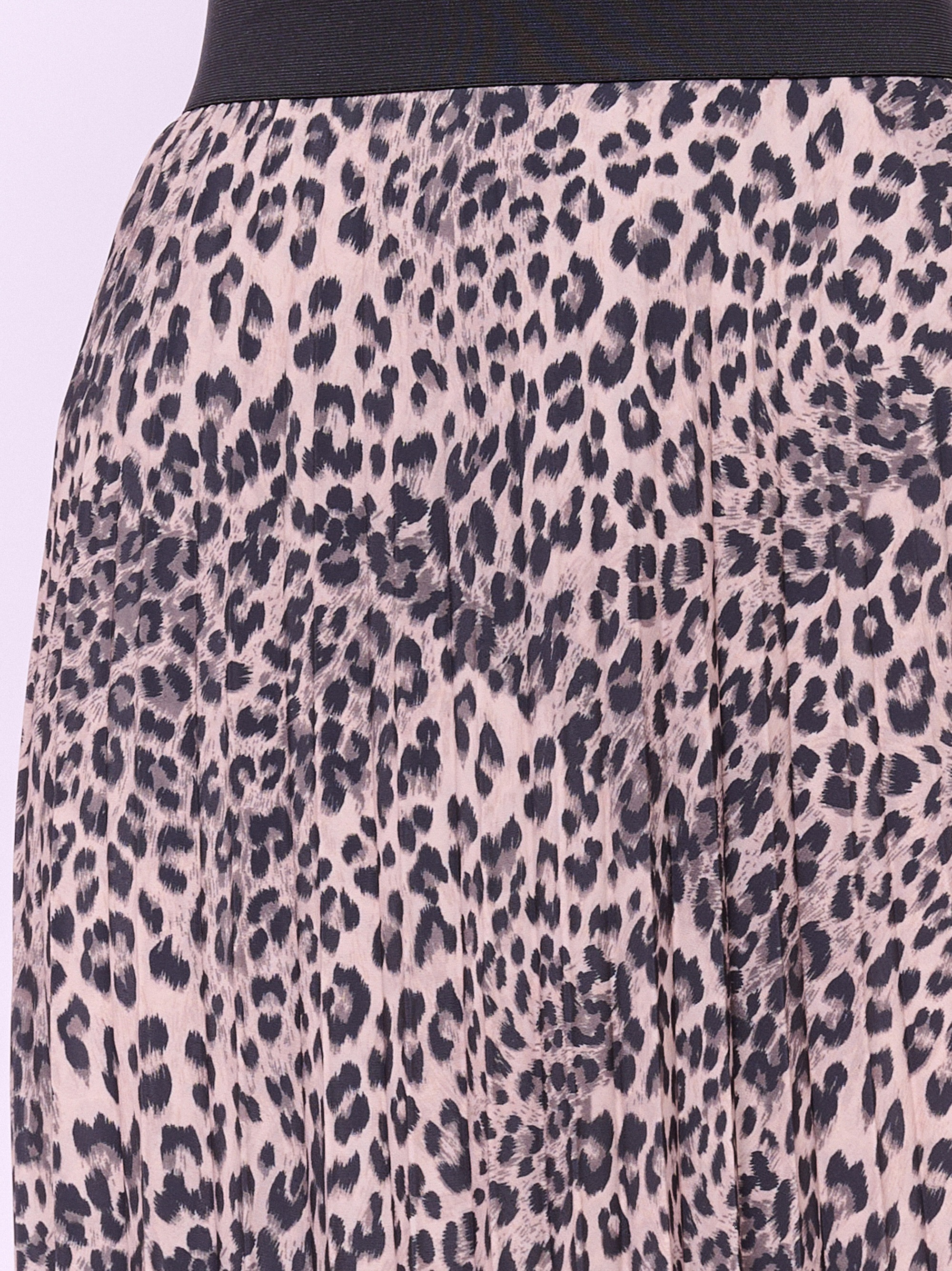 Плиссированная юбка средней длины на широкой резинке из ткани с анималистическим рисунком. Длина по спинке: 81 см.