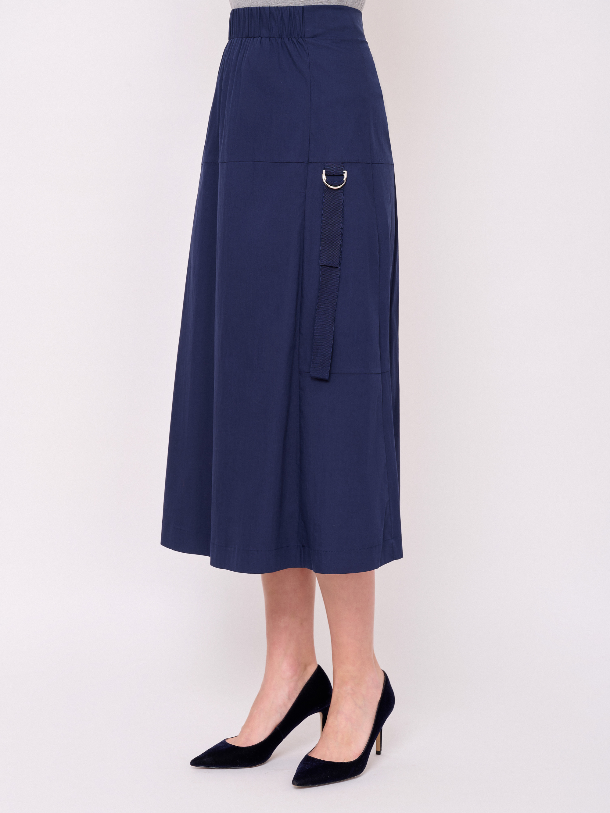 Без застежки, пояс на резинке, покрой расклешенный, посадка средняя, без рисунка, без карманов, конструктивные элементы хлястики, модель юбки расклешенная, длина юбки миди.