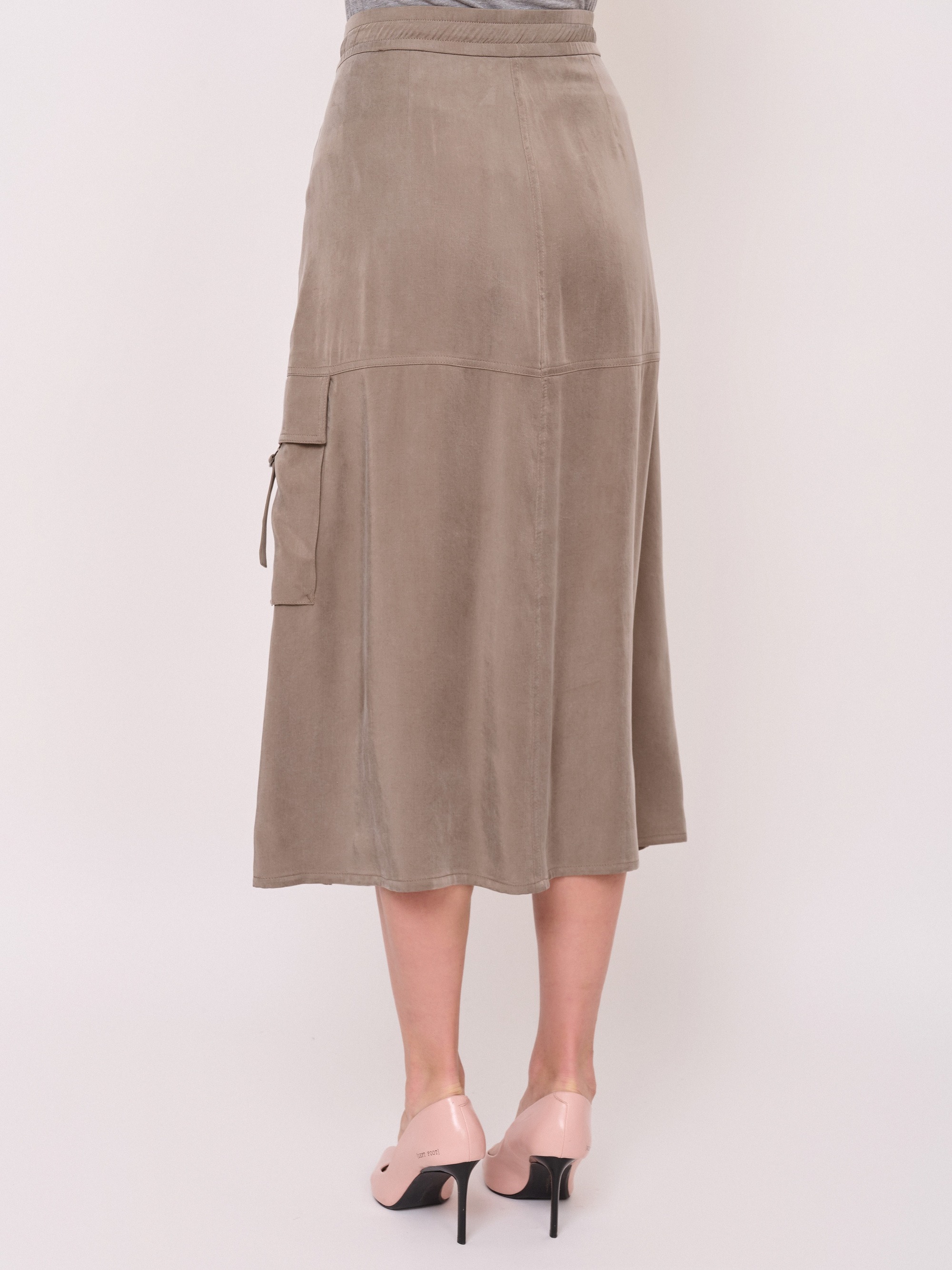 Детали: застежка молния, покрой расклешенный, посадка средняя, без рисунка, карманы косые, конструктивные элементы крой клиньями, модель юбки расклешенная, длина юбки миди. Длина по спинке: 81 см.