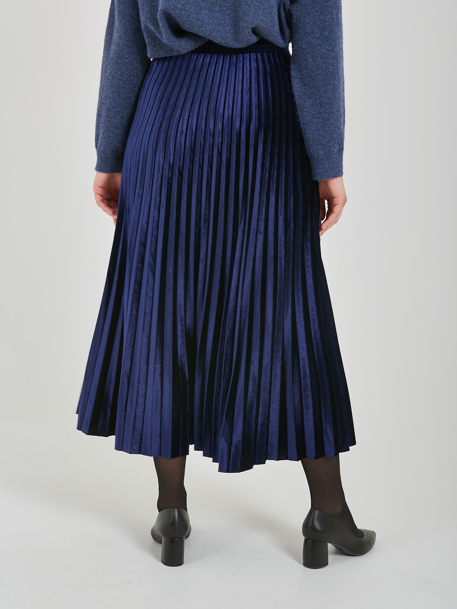 Бархатная юбка плиссе в сапфирово - синем и черном оттенках.