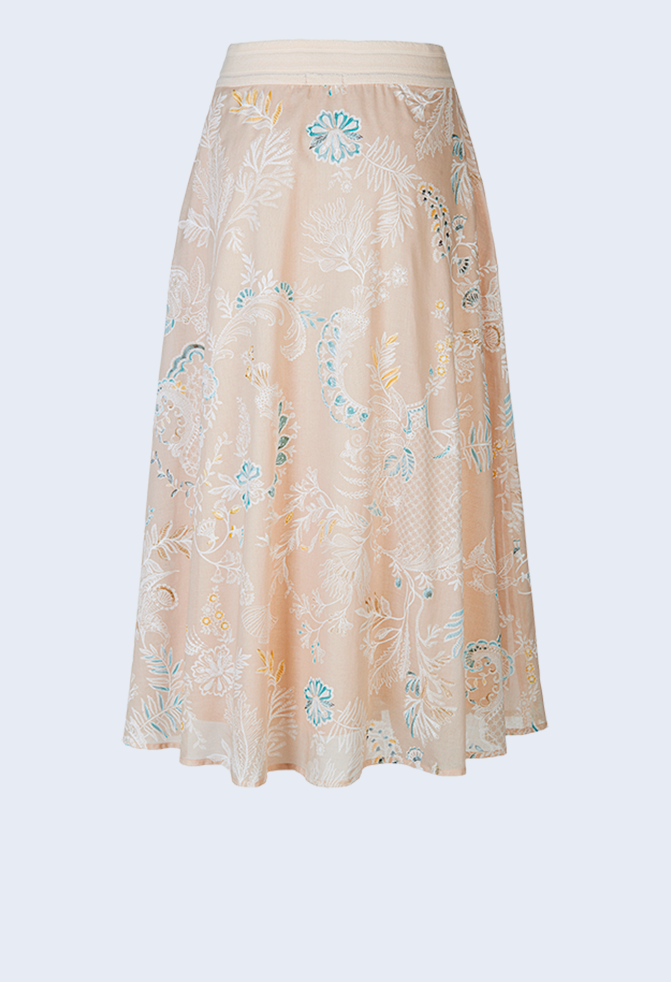 Хлопковая юбка с цветочным мотивом. Особый и сложный процесс печати придает принту особый 3D-эффект. Классический А-силуэт выполнен в виде юбки-комбинации, имеет боковые карманы и модную драпировку.