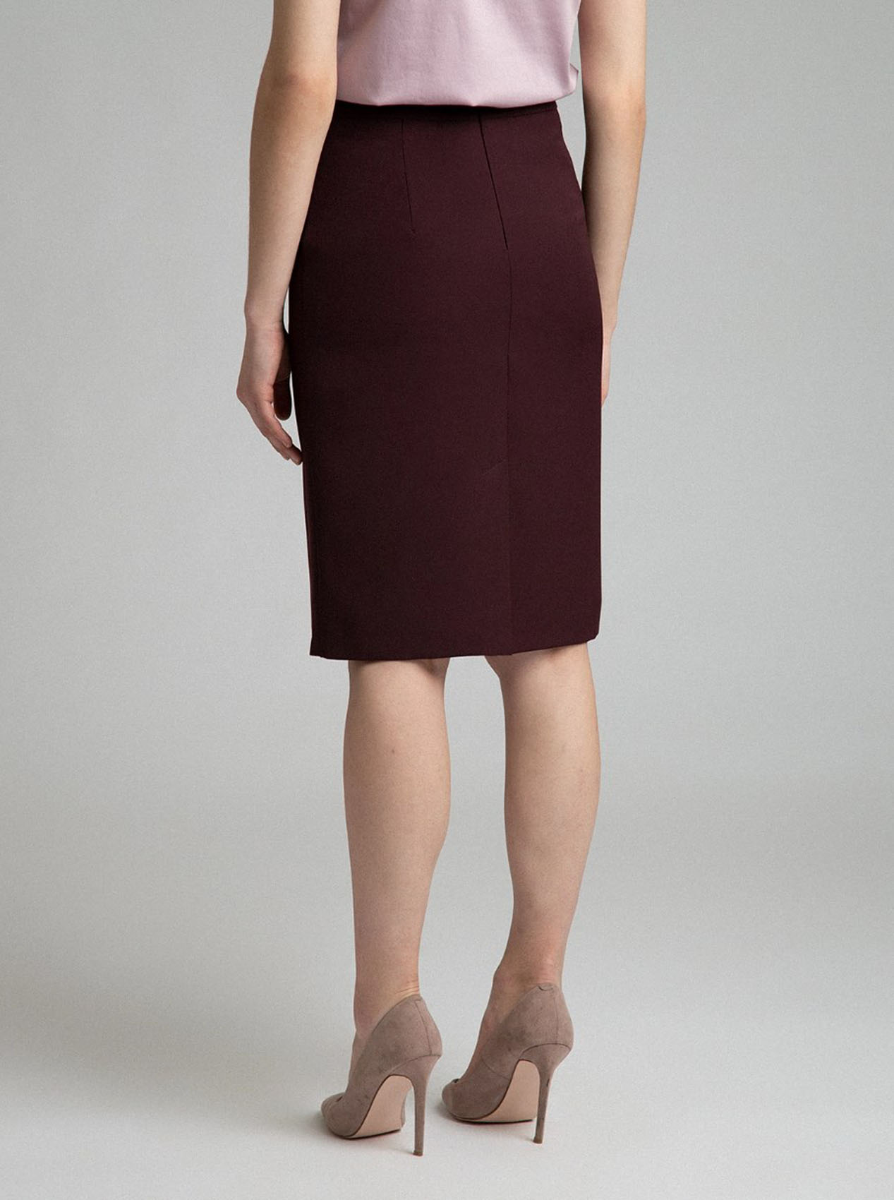 Офисный вариант. Прямая юбка благородного цвета бордо разнообразит классический офисный гардероб.