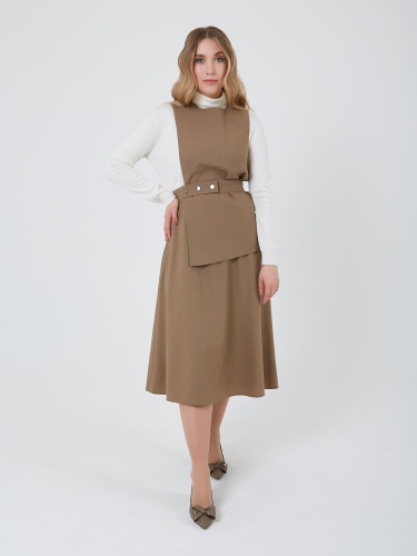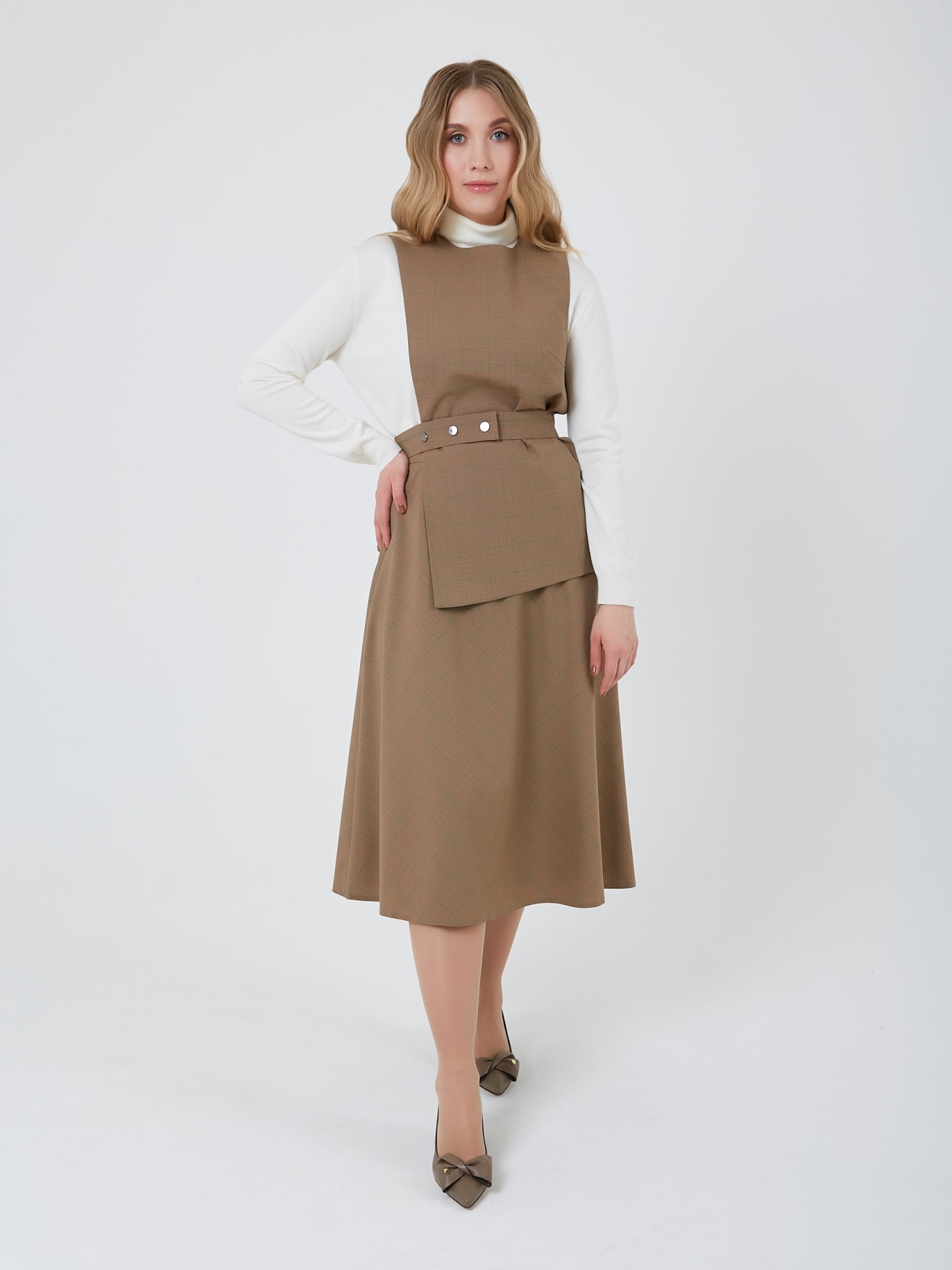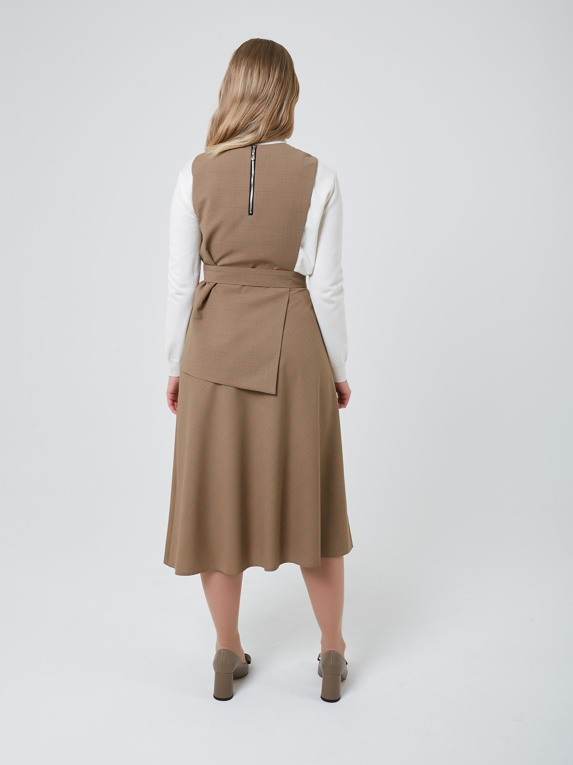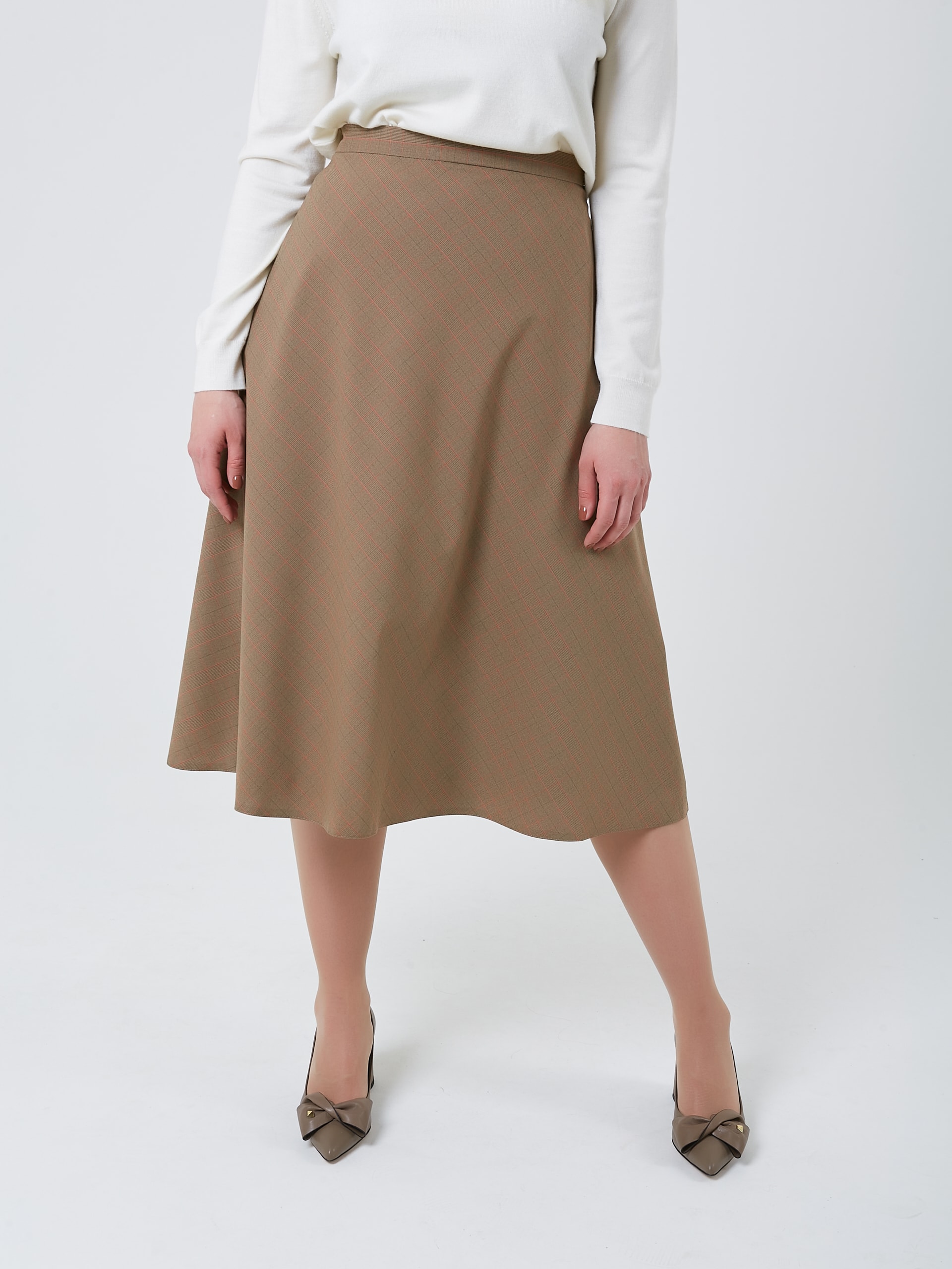 Юбка-трапеция в длине миди, актуального оттенка "кофе с молоком" и ненавязчивой клеткой. Коллекция Осень-Зима 2024-2025. Капсула "Крадущийся тигр, затаившийся дракон".