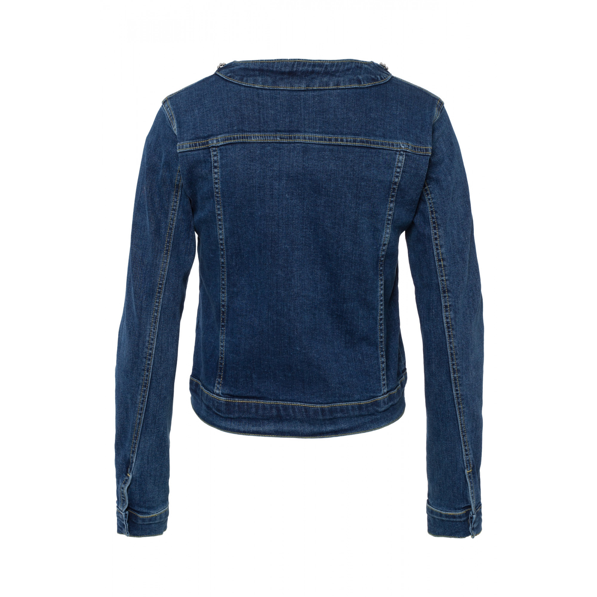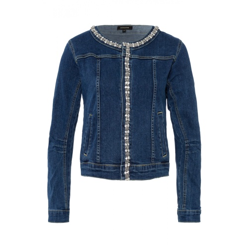 Джинсовая куртка с узкой талией. Универсальная модель сочетается с любимым образом: от классического до повседневого. Украшена декоративными стразами вдоль планки и выреза, а так же двумя наклонными карманами. Застегивается на потайные кнопки. Длина в размере 44 = 50см