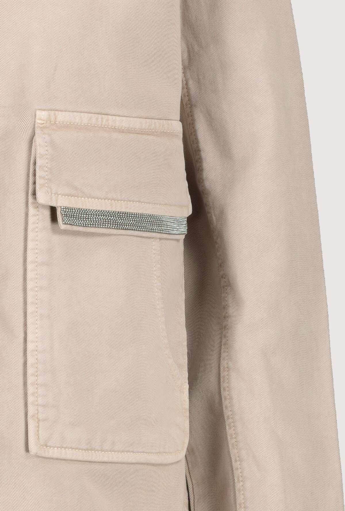 На сайте указаны Российские размеры. Куртка с отложным воротником и накладными карманами. Модель с длинными рукавами и потайной планкой на кнопках отличается большими карманами с клапанами на цепочке и дополнительными прорезными карманами спереди. Форма: прямой крой с закругленным низом, отложной воротник, рукава заканчиваются разрезом и манжетами на одной пуговице. Швы: передний плечевой, продольные разделительные швы на рукавах и спинке, кокеточный шов на спинке. Параметры модели: 42 размер, рост 176 см