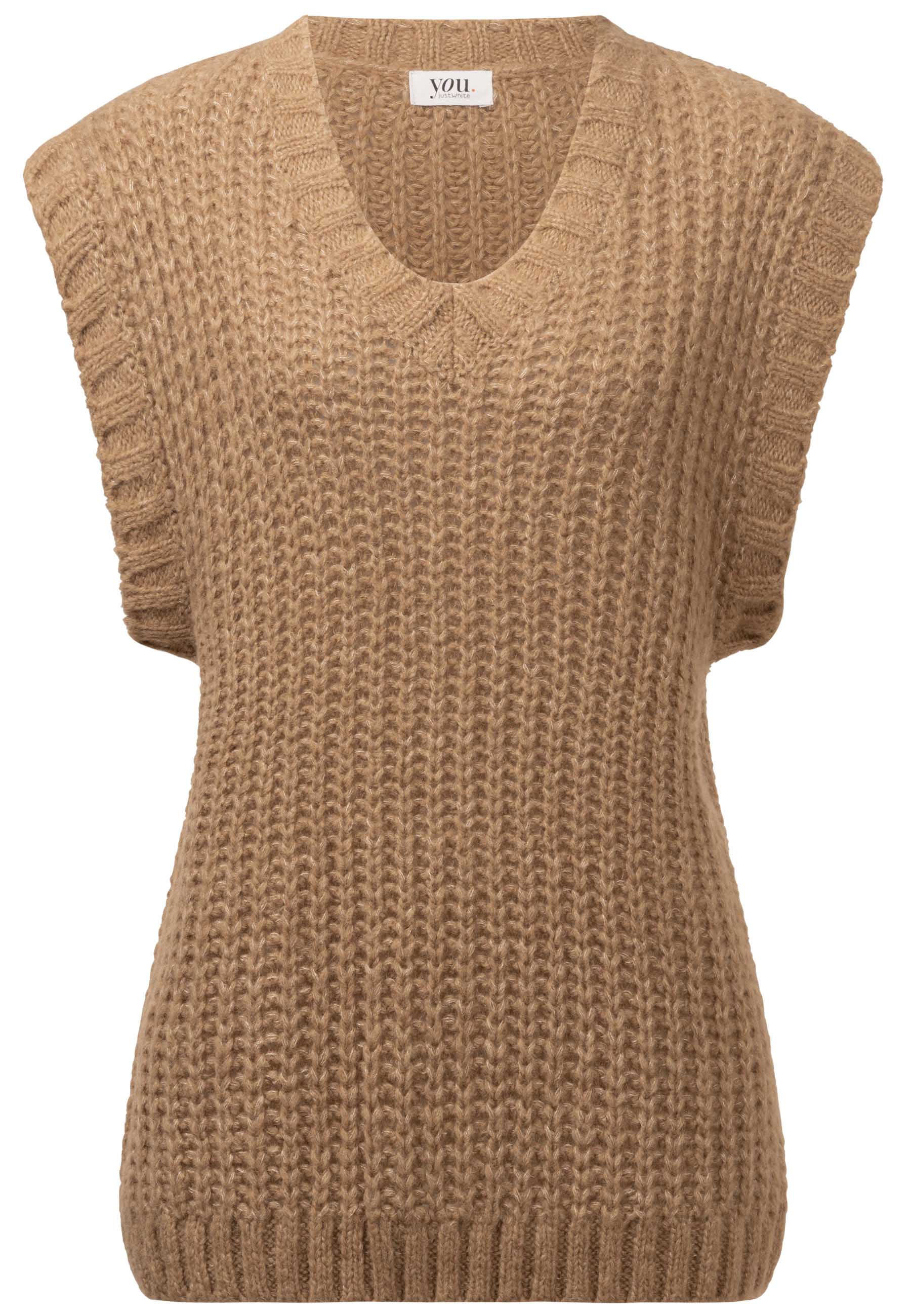 На сайте указаны российские размеры. Приятный мягкий свитер-жилет. С этой моделью из высококачественных материалов вы сможете создавать крутые образы в холодные дни. Благодаря V-образному вырезу слиповер идеально сочетается с блузой с отложным воротником или воротником-стойкой или со свитером с высоким воротником. Свободный крой в сочетании с ребристым вязанием и контрастным вязанием на рукавах, V-образном вырезе и по низу придают комбинезону спортивный и повседневный вид. Рост модели: 177 см. Измерения для 44 размера: Окружность груди: 57 см Бедра: 37 см Длина по спинке: 53 см Пройма: 25см
