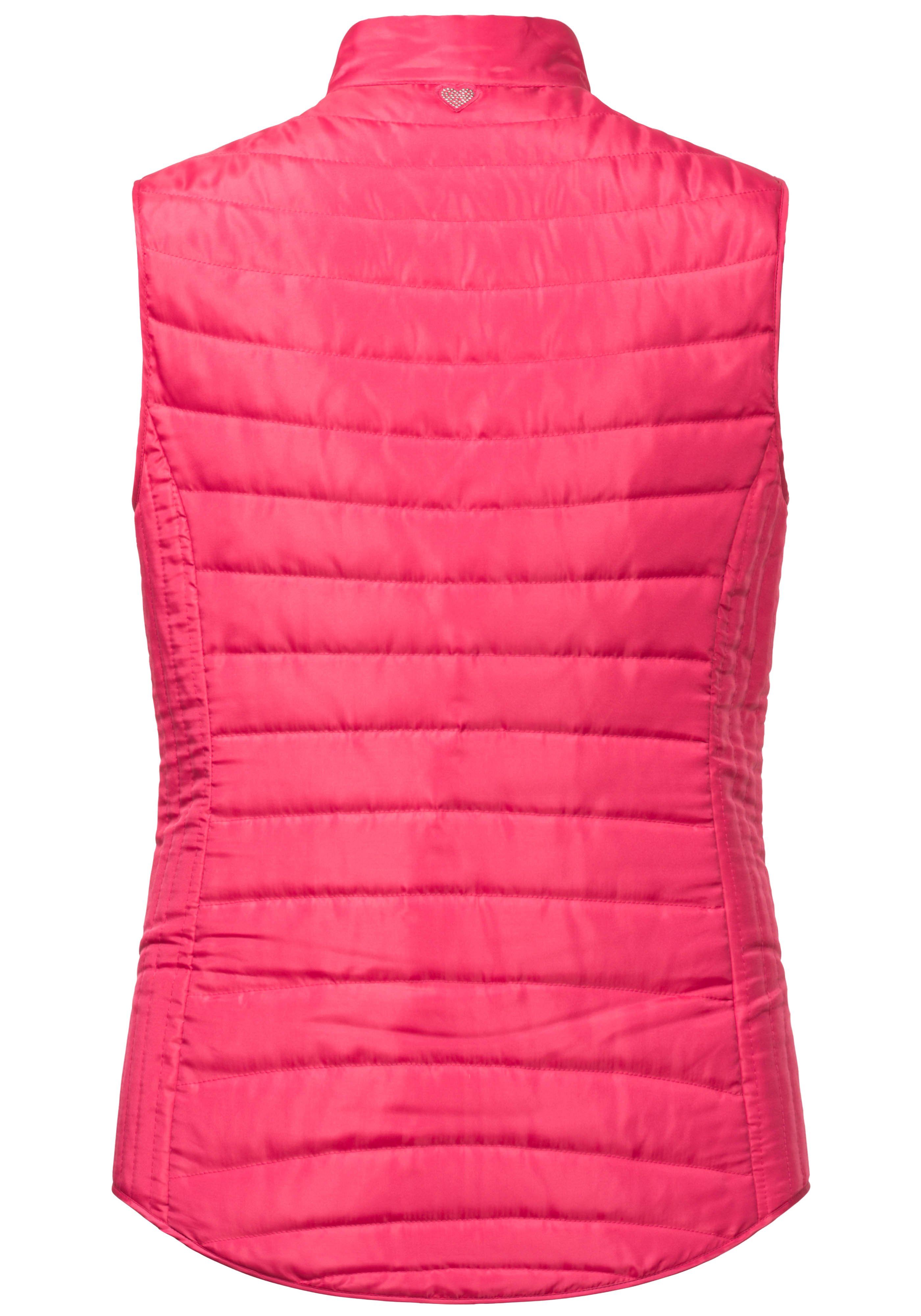 На сайте указаны российские размеры. Женственный спортивный стеганый жилет из легкого высококачественного материала. Жилет впечатляет своим лаконичным видом благодаря горизонтальной стежке, которая сочетается с продольной стежкой по бокам. Эта комбинация также делает их фигуру льстивой. Его можно комбинировать по-разному, и благодаря насыщенному розовому цвету он придает каждому образу что-то свое. Женственный спортивный образ подчеркивают два боковых кармана, которые можно застегнуть на кнопку. Еще одним привлекательным элементом жилета является тонкое блестящее сердце под воротником-стойкой на спине. Модель ростом 177 см Измерения для 44 размера: Окружность груди: 103 см Талия: 96 см Бедра: 115см Длина по спинке: 68 см
