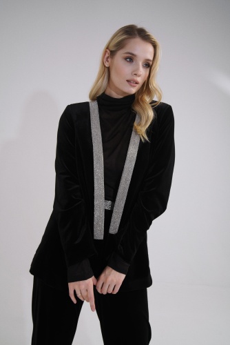 На сайте указаны российские размеры. Украшенный бархатный жакет прямого кроя с длинными рукавами. Дополняют модель аппликации из страз. Идеальный образ составят брюки NISSA (арт. P11910)