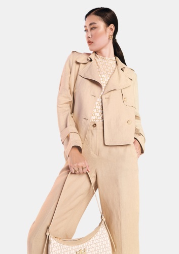 Современный льняной жакет в модном стиле тренча. Этот двубортный пиджак повседневного кроя с типичными элементами тренча станет идеальным спутником на свежем воздухе.