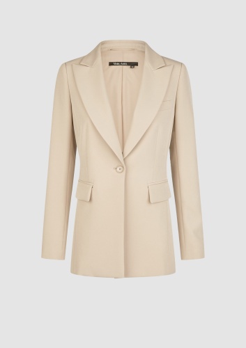 Этот узкий пиджак на одной пуговице изготовлен из мягкой и легкой в уходе ткани. Выполненная из чемоданной продукции с эмблемой, она впечатляет своей классической структурой с нагрудным карманом и карманами с окантовкой. Особенно красивой деталью является модный остроконечный лацкан.