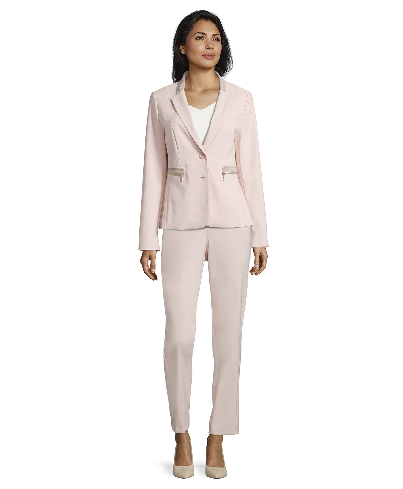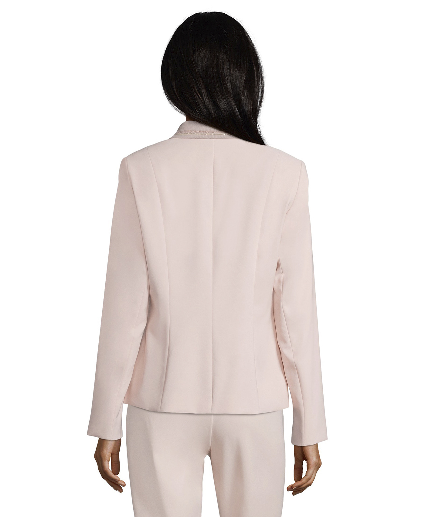 Классический жакет - абсолютно необходимый элемент женского гардероба! Слегка приталенный крой подчеркивает достоинства фигуры. Лацканы, застежка на пуговицах, длинные рукава. Отделка блестящей тесьмой придает образу нотку гламура. Этот жакет будет изюминкой как делового, так и кэжуал образа.